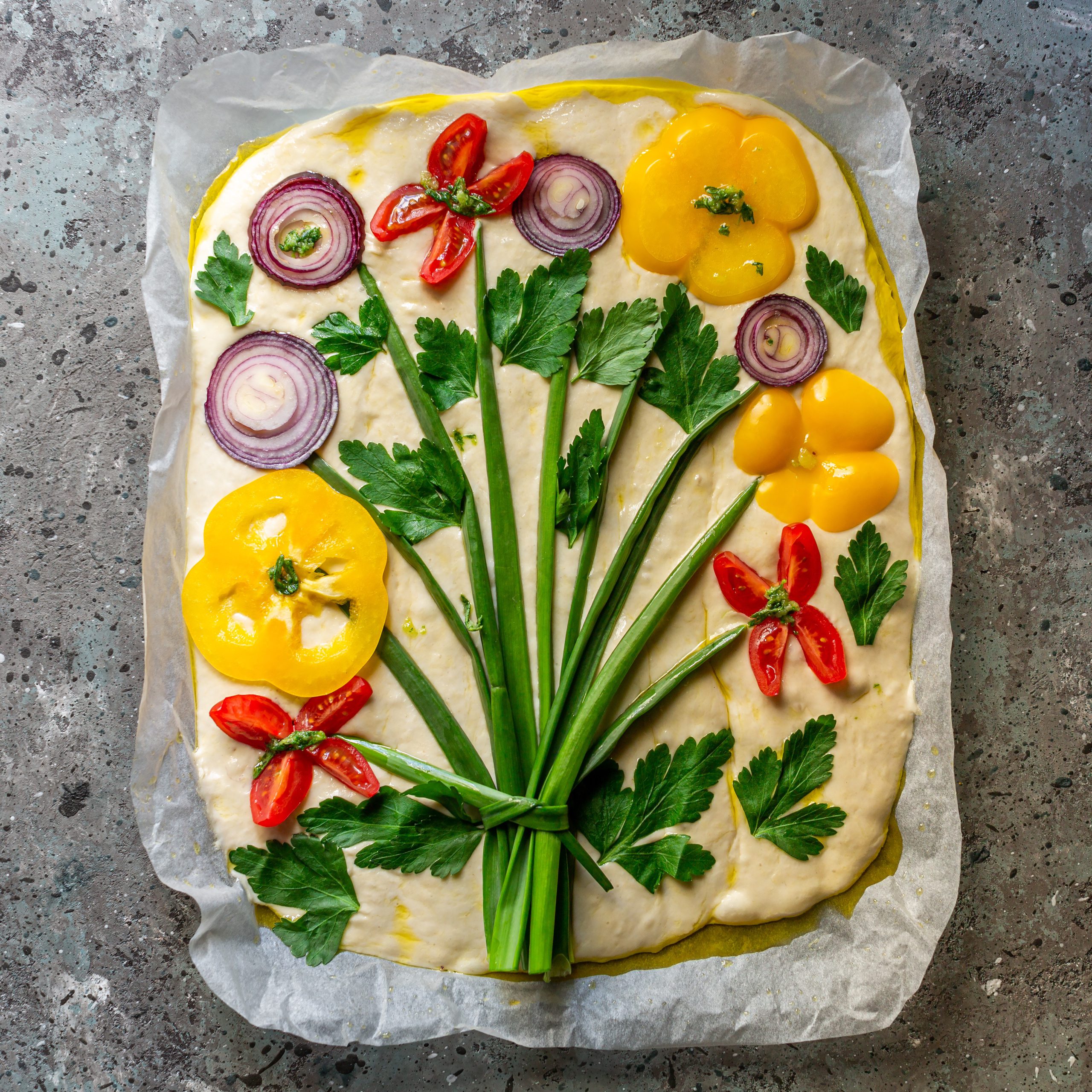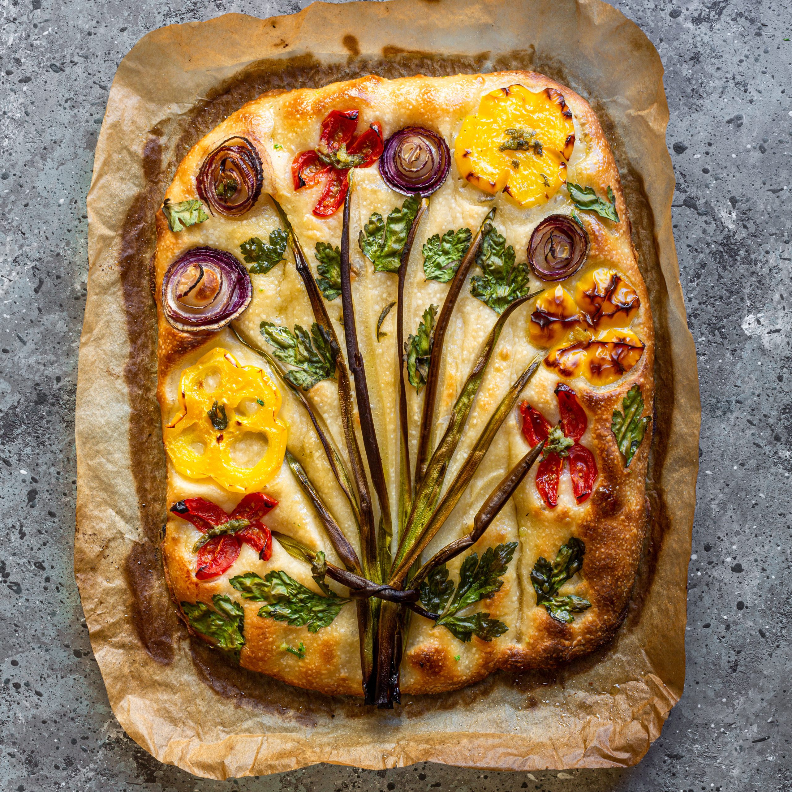 Det här brödet bara måste jag baka till påsk, det är så himla himla vackert ju! Jag har ett jättebra focacciarecept som blir så himla bra varje gång och sen tänker jag att man dekorerar det som på bilden här nedan. Kan ju inte bli vackrare, så himla vackert att ställa fram på påskmiddagen. Kommer någon ens våga ta en bit undrar man ju? Jodå! Brödet är föööör gott! Gott att äta bara som det är utan att ha någonting till.