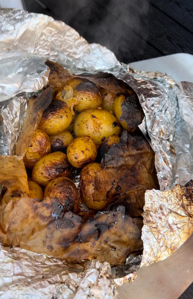 – när det första paketet med smöriga potatisar (<klicka för recept) har grillats.