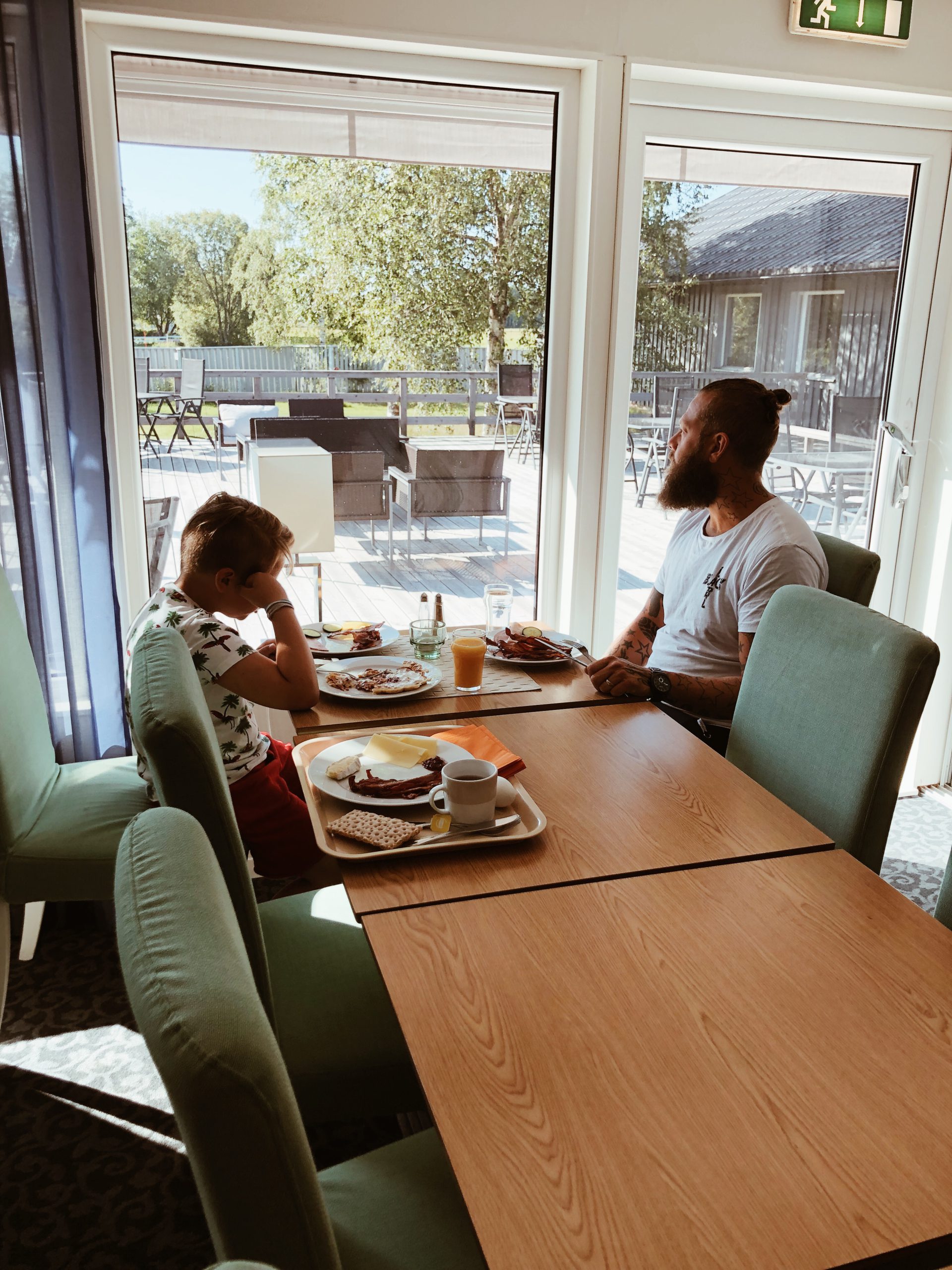 Vi startade dagen med en dusch, sen blev det frukost nere i restaurangen. Fanns tyvärr inget laktosfritt men jag fick äta det jag kunde. Att äta laktos nu är nog ingen god idé. Mitt tips till alla caféer, restauranger och hotell är att ALLTID ha laktosfria alternativ. Detta kan nämligen vara en av anledningarna till varför man väljer bort ställen. Bara ett tips i all välmening. Tony och Milo tyckte i alla fall att frukosten var toppen på vårt lilla hotell, ja dom som inte behöver tänka på laktos.