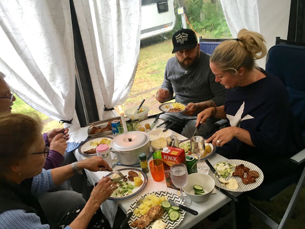 Förmodligen blir vi kvar en natt till. Bara lite mys och häng här är semester nog. Barnen lajjar och springer mellan husvagnar och husbilar och jag blir alldeles varm i hjärtat av det. Vi håller som bäst på att plantera minnen i deras små huvuden. Vet ni att jag blir alldeles lycklig i hjärtat av det, att jag kan påverka hans barndom och hans minnen…. fint ju.