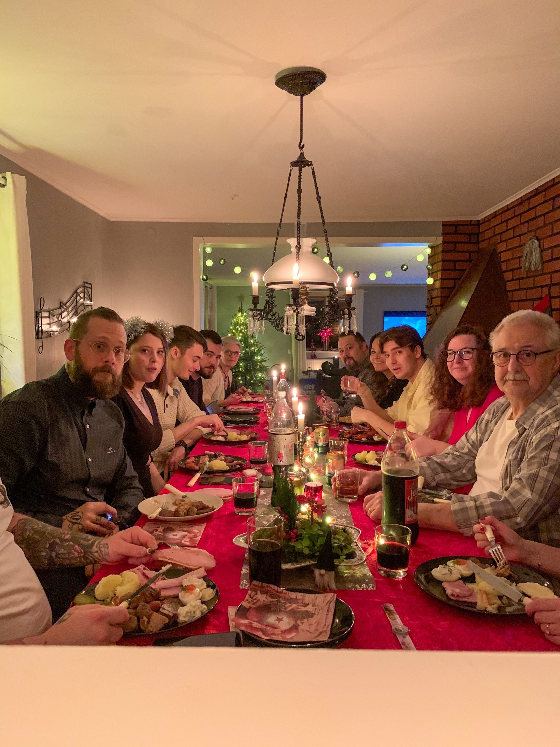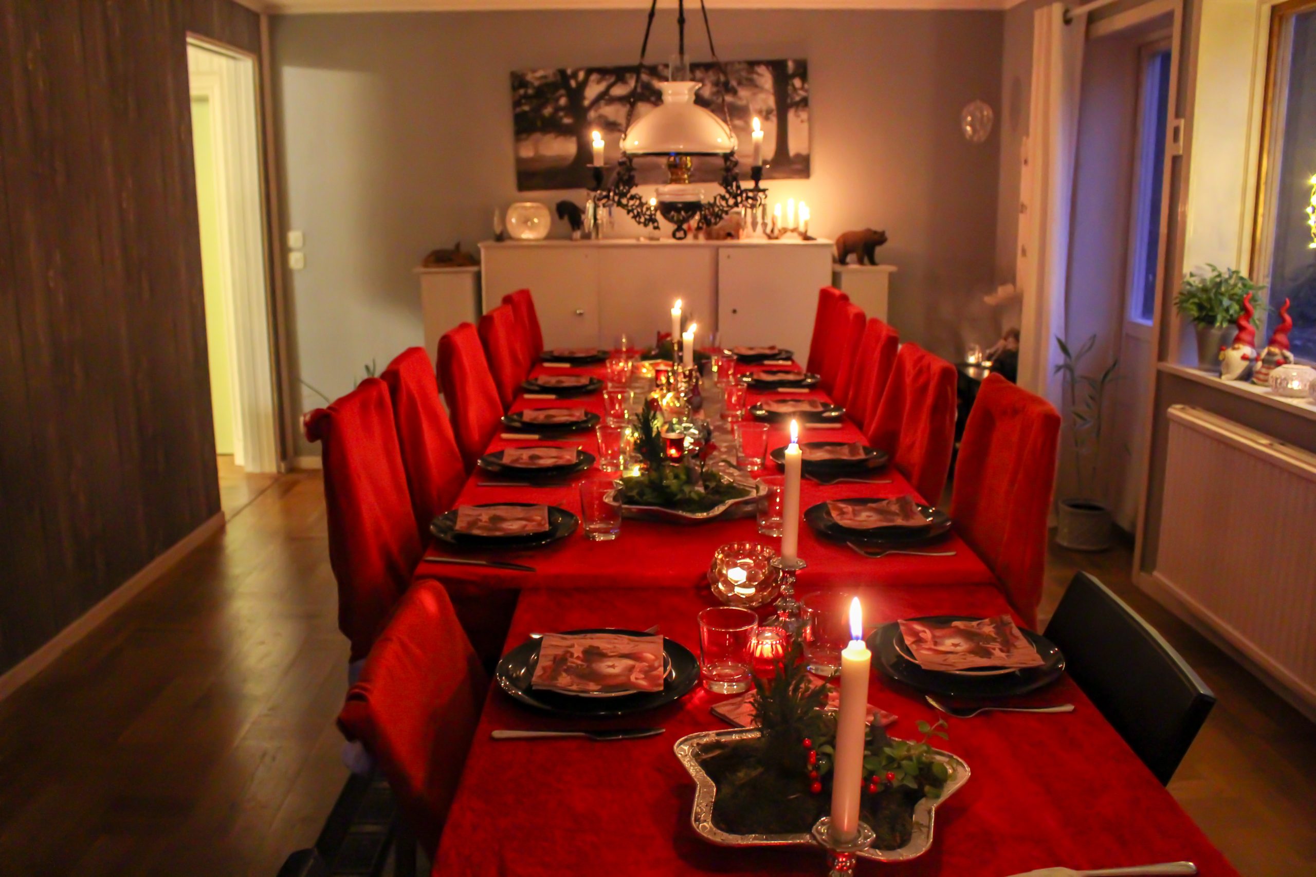 Lagom till Kalle skulle börja tog vi vårt pick och pack bokstavligen och gav oss av mot Tonys bror Hasse med familj. Där var det så himla mysigt dukat och julen stod högt i tak. Vi hade bestämt innan vad alla skulle göra med sig. Vi hade prinskorv, jansson och efterrätt på vår lott. Till mig själv gjorde jag rotfruktsgratäng, vegansk sill och en vegansk julskinka.