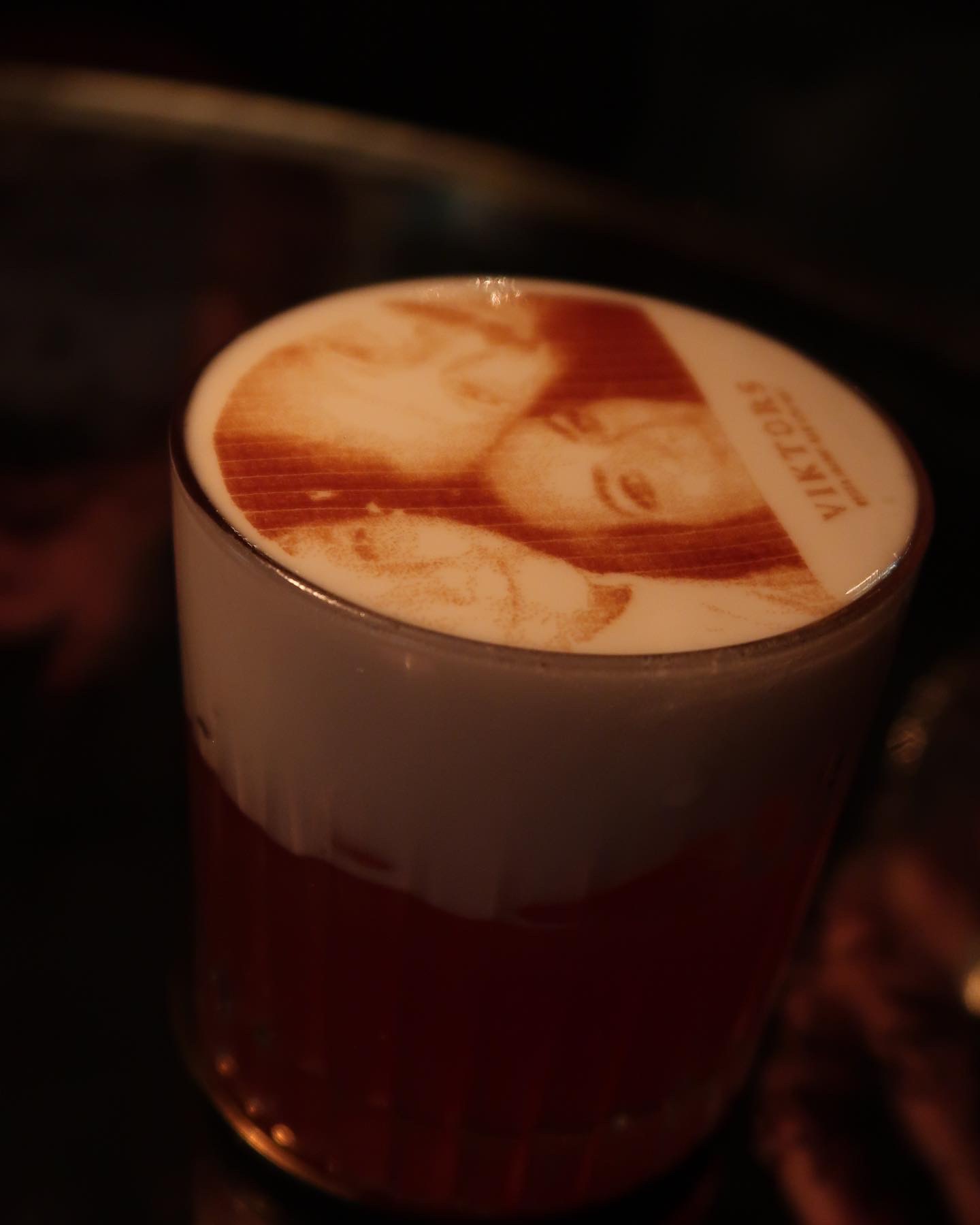 Efter vi ätit våra efterrätter så gick vi upp på övervåningen. Där tog vi in en alkoholfri drink då vi fick höra talas om att man kunde få sin bild i skummet på drinken. Omg! Helt sjukt häftigt.