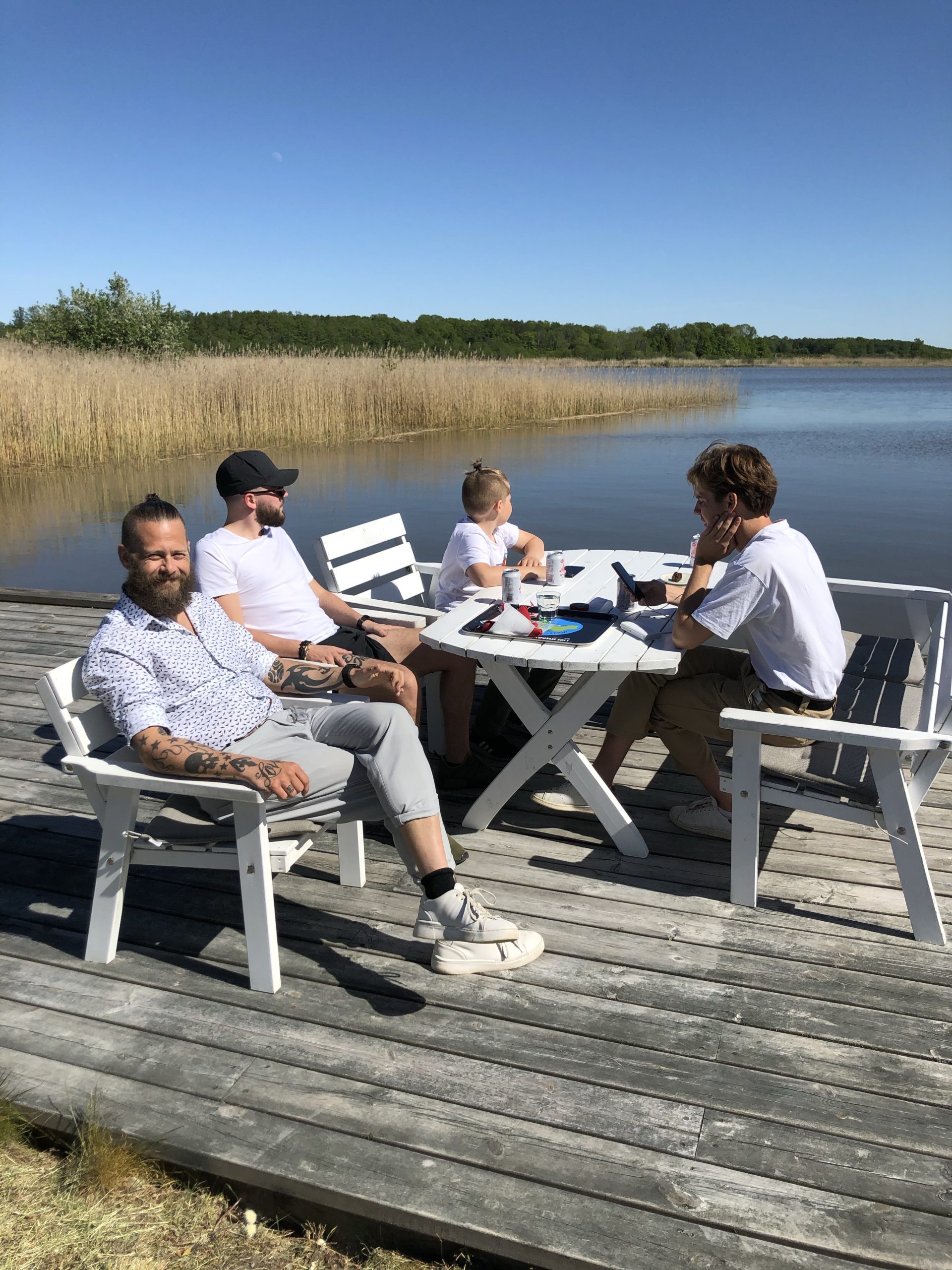 Efteråt fikade vi på Hornudden. Mysigaste stället i Norra Europa typ. Där vill man sitta hela dagen och bara njuta. Inte blev det sämre av att jag träffade en av mina ”Hela Sverige Bakar” kollegor, inte sett sen vi spelade in programmet för 8 år sen. Så kul! Mamma och ligan satt vid ett annat bord, därför syns dom inte i bild.