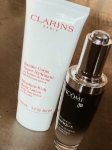 Till att börja med så ville jag ha en fuktgivare till kroppen som hette duga! Fick läsa om >>Clarins body lotion (REA nu)<< och se att många var nöjda med den. Det är en superfukt som jag smörjer in kroppen med. Den är dessutom lite sammandragande och doftar ljuvligt. Älskar hur jag doftar efter duschen när jag just smort mig. En bra fuktkräm är perfekt när man använder mycket BUS. Det torkar nämligen ut huden. Håller du dock efter med fukt så håller sig huden fint återfuktad och så håller bus:en längre.