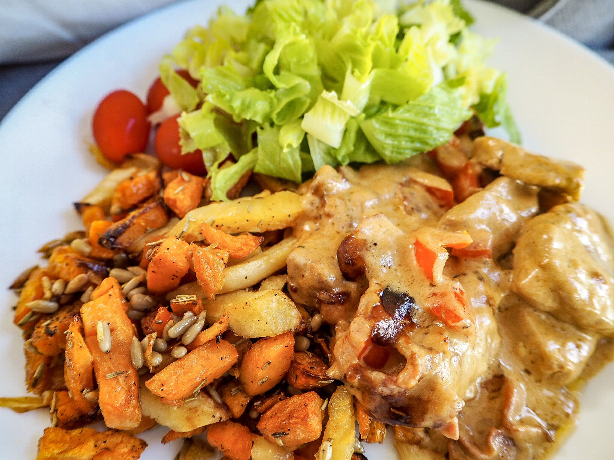 Gör fläskfilé receptet nu men jag bytte ut köttet mot kyckling. Super gott att ha några skedar mango chutney i 🙂