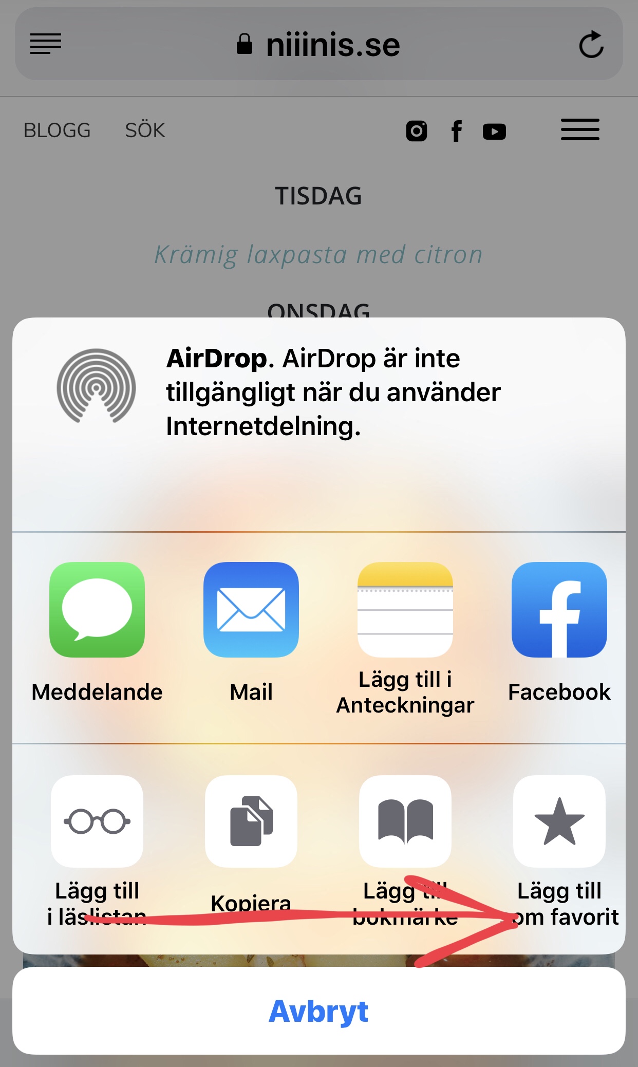 När du är inne på t ex min blogg och veckomatsedeln så ska du först klicka på rubriken i mitt inlägg. När du gjort det så kommer du in på själva inlägget så att säga. Längst ned på din telefon (ja de allra flesta besöker bloggen ifrån sina telefoner) så har du en fyrkant med en pil uppåt.