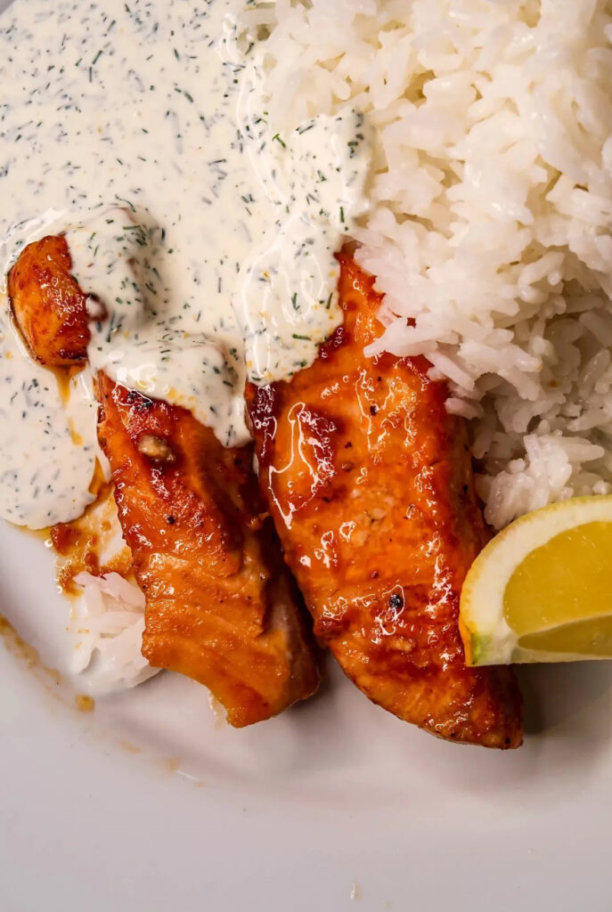 Wow, en riktig favvo. Laxen med barbecuesmak blir verkligen en galet god kombo med den kalla dillsåsen. Mums! En fiskrätt som hela familjen gillar.