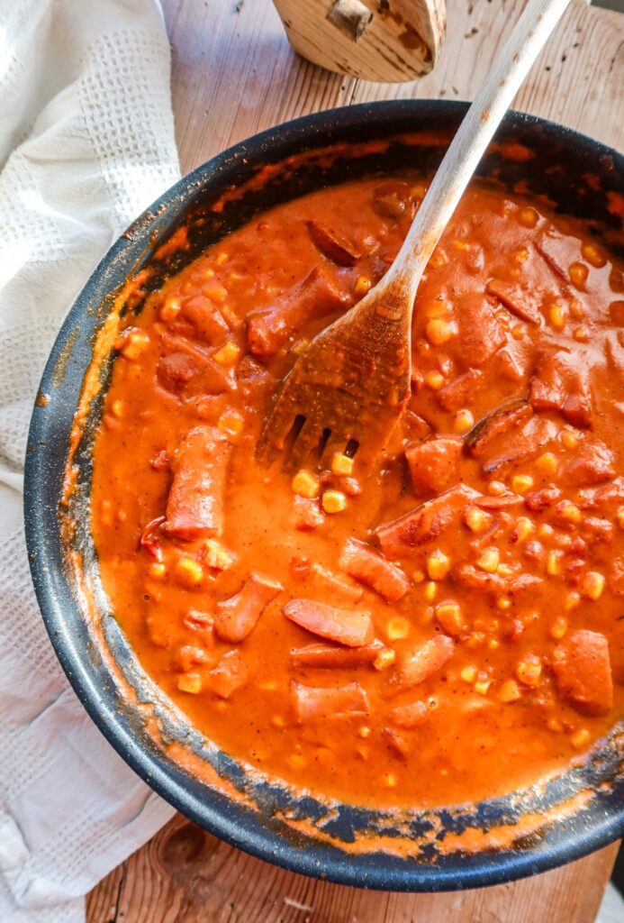 En busenkel och god rätt som jag lagade av Denniskorv. Du kan givetvis laga den av vad som helst för korv, det var det jag hade hemma. Blev hur gott som helst, minsting åt så han sprack nästan. Haha…