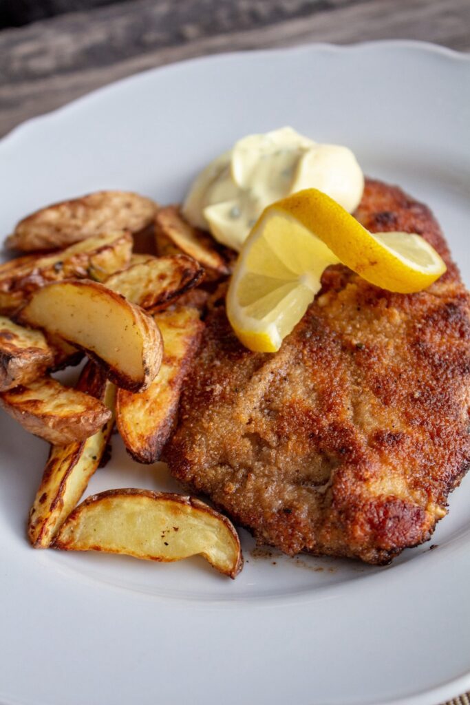 Såhär enkelt kan man svänga ihop en schnitzel som påminner om äkta wienerschnitzel men med annat kött. Såsen är så god, missa inte den!