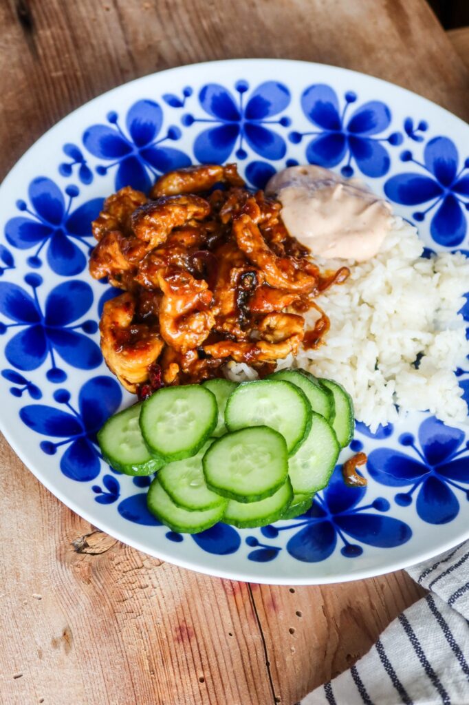 Chilikyckling med srirachamajjo och smörigt ris