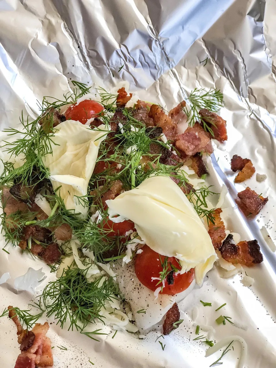 TISDAG: Fiskpaket med parmesan och knaperstekt bacon