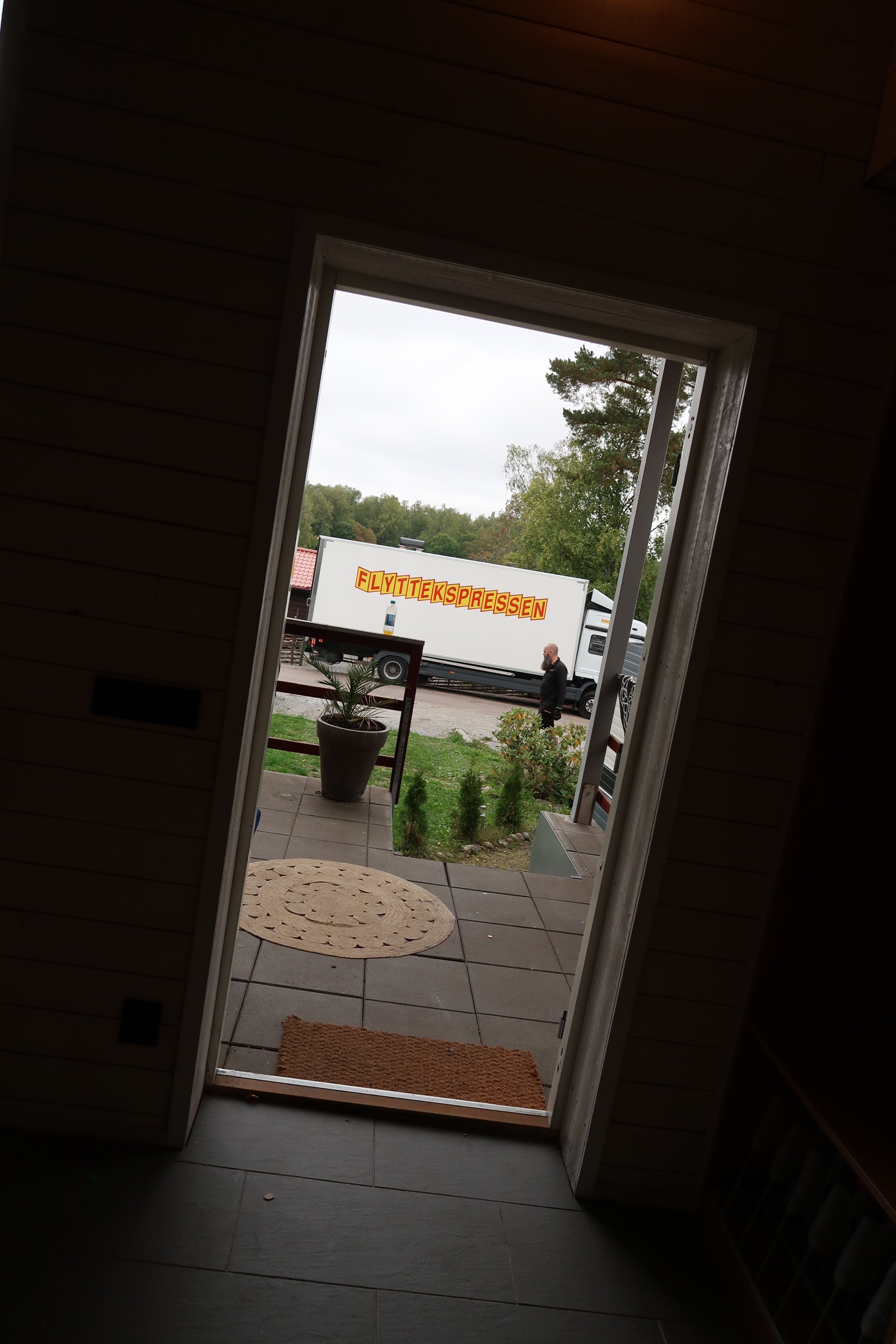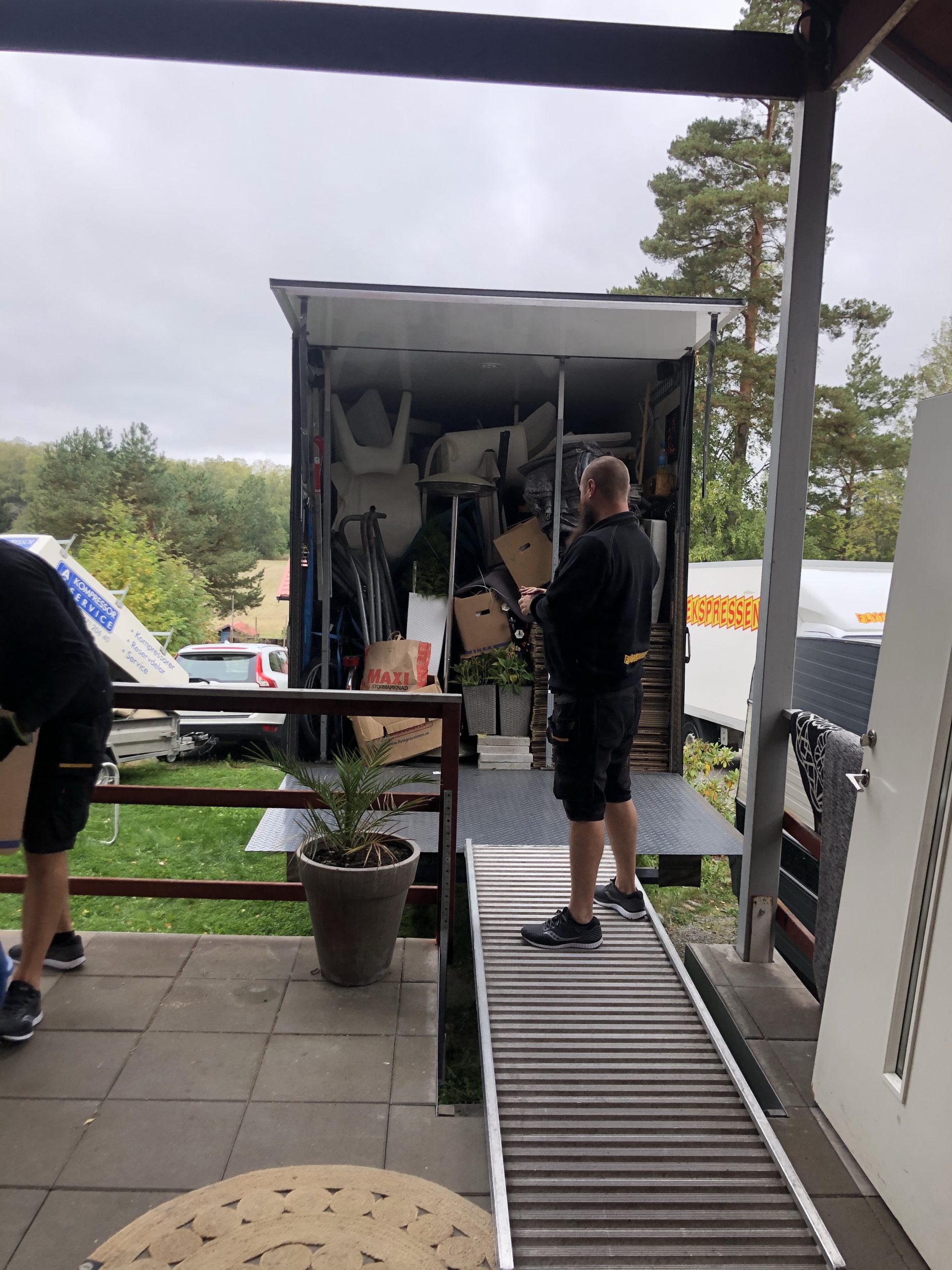 Haha, vi hade lite för mycket grejer så dom fick hämta en till liten lastbil för att få med sig allt.