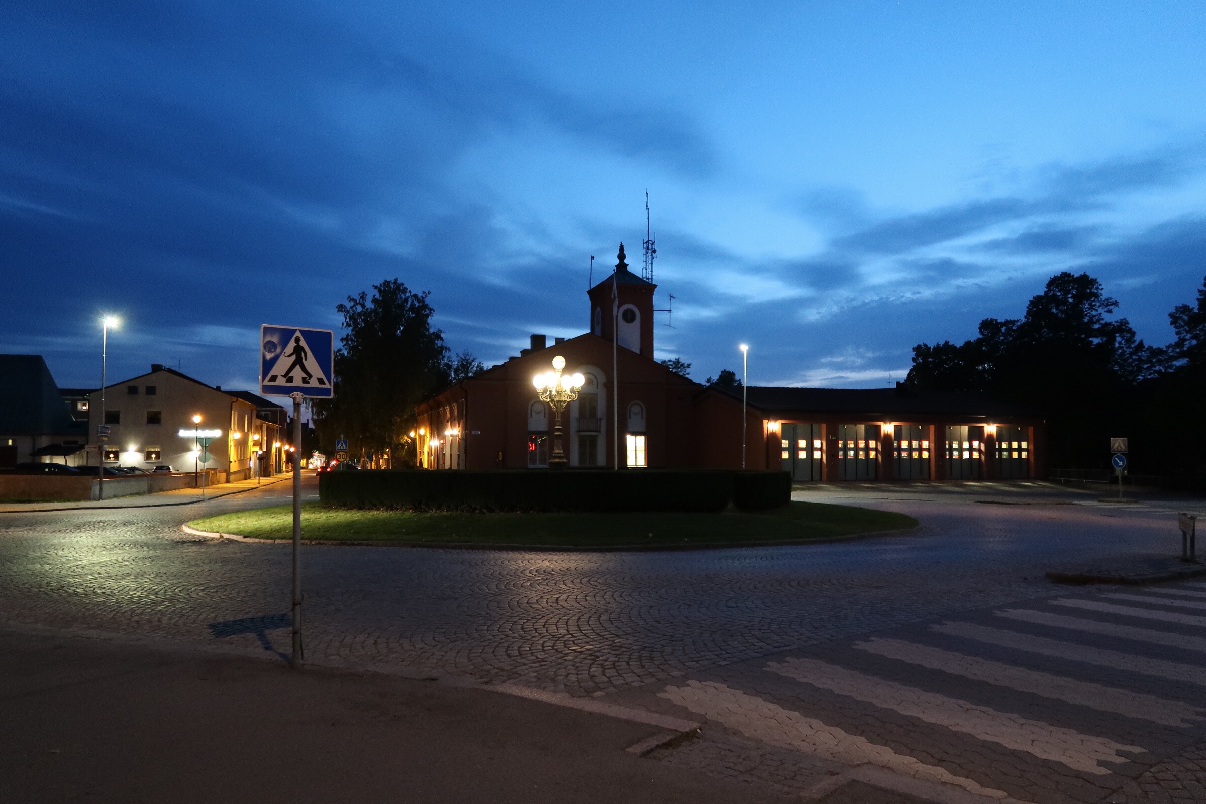 Efter maten tog vi en liten promenad. Här har ni vår vackra brandstation, förr om åren har det varit bostadshus här. Passade att promenera runt nu när vi bor helt centralt. Det var någon raid vid Skolparken så Milo behövde ta en avstickare förbi där också.