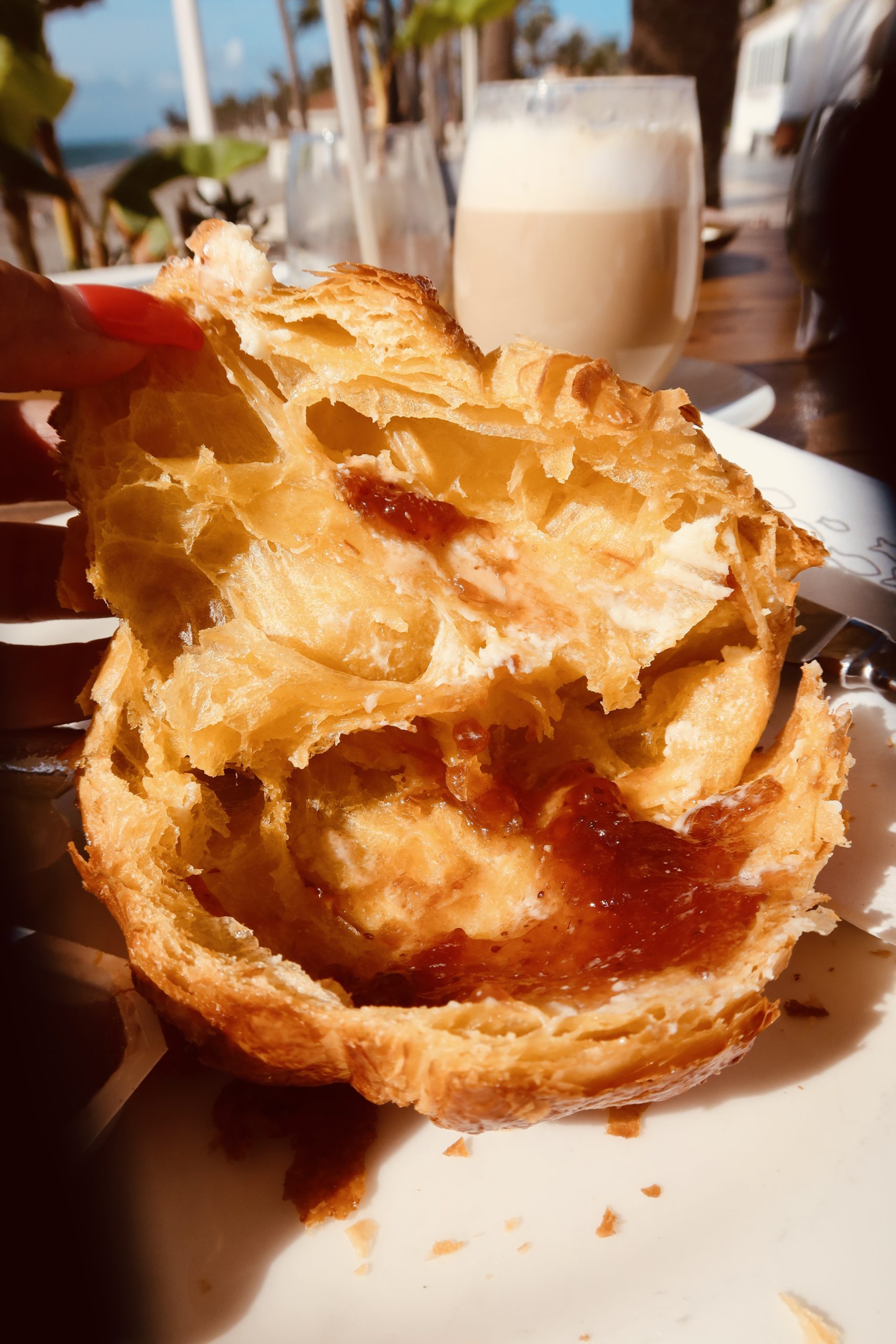 I Söndags morse fick vi själva uppleva en frukost på strandpromenaden. Milo och jag gav 10/10 för croissanterna. Det var de mesta fantastiska vi någonsin ätit. Det med en koffeinfri latte och färskpressad apelsinjuice. Ja det var ju inte synd om oss direkt. Tony åt en tortilla, det är en spansk omelett med potatis. Riktigt god! Det måste jag göra hemma någon dag.