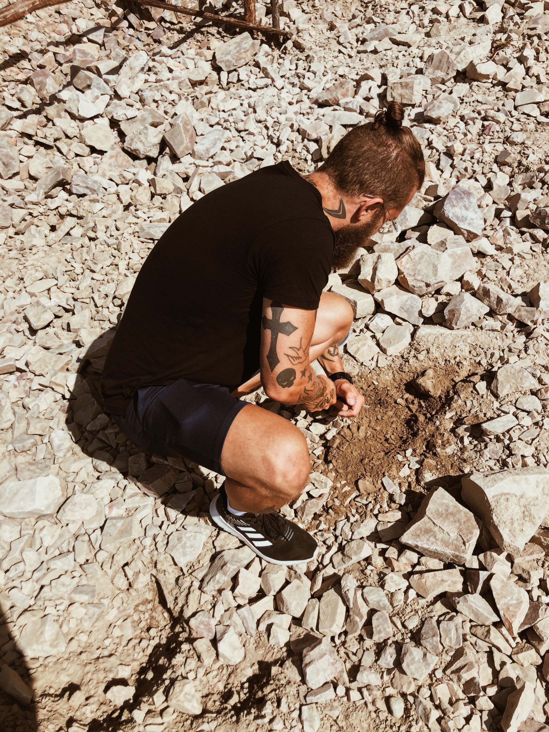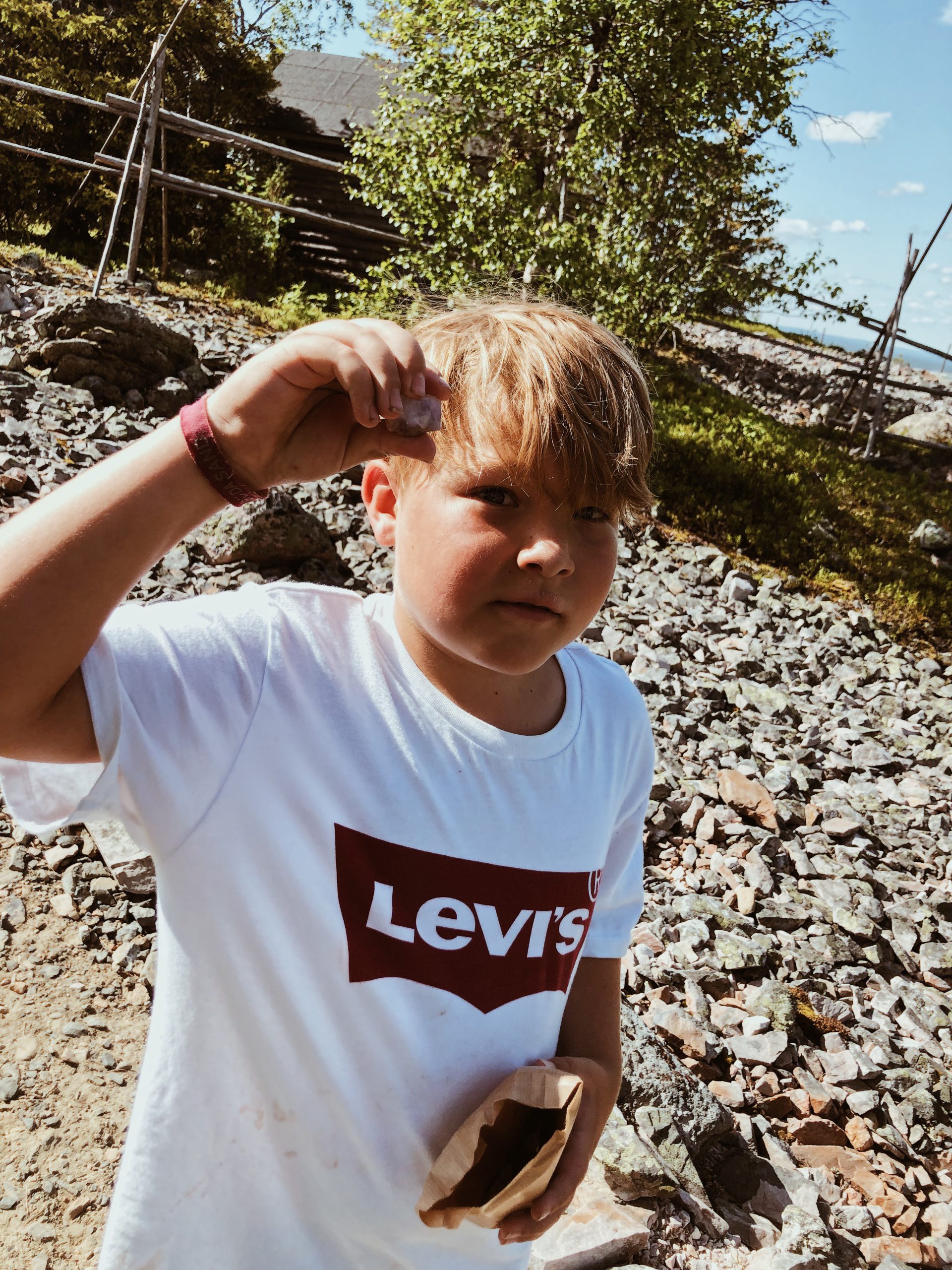 På väg ut från ametistgruvan var vi både svettiga och nästan skakiga av adrenalin. Milo grävde med Tonys t-shirt på skallen som om det inte fanns någon morgondag. Han hittade precis lika mycket som vi.