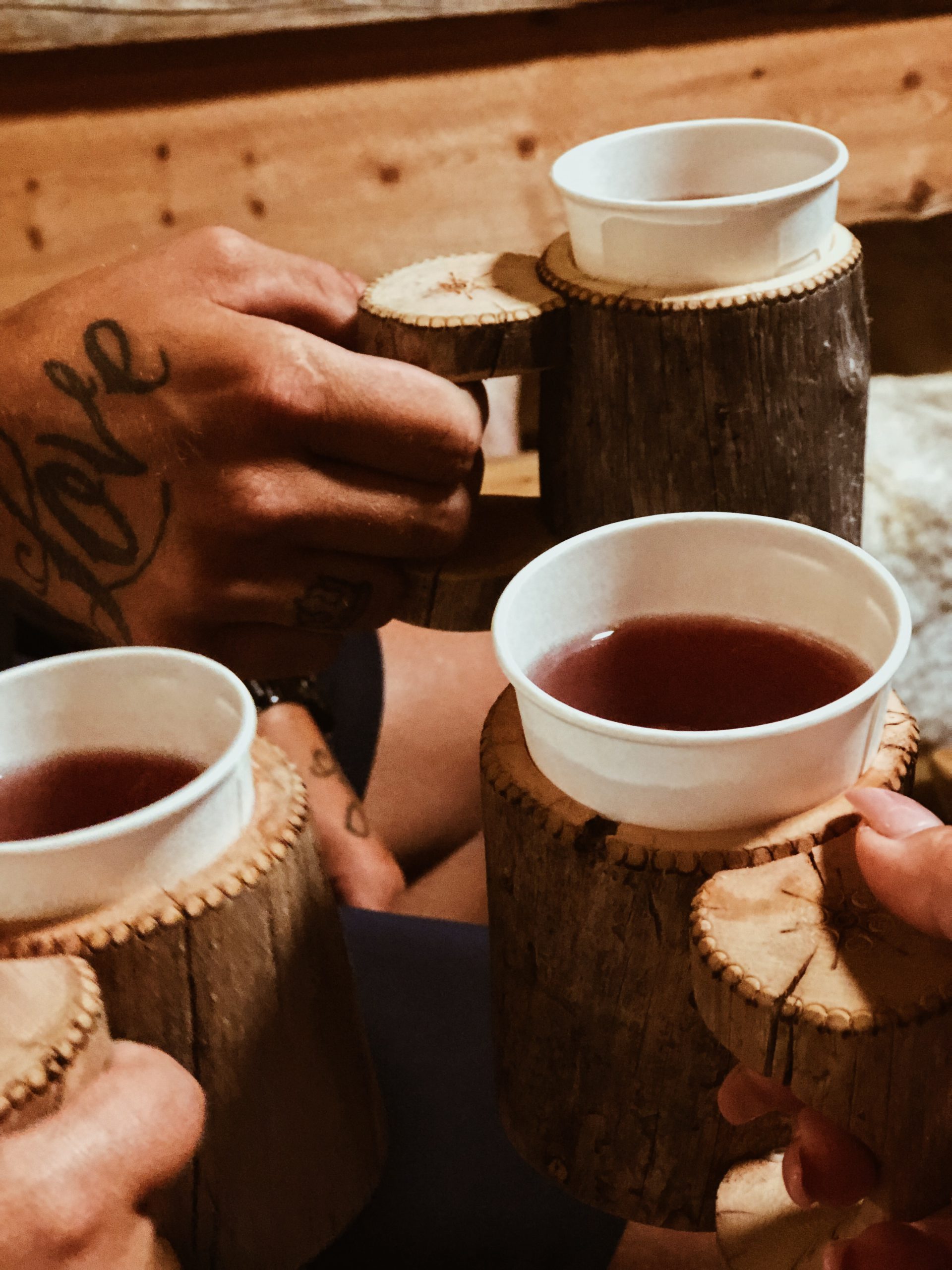 Vi samlades i ett svettigt litet rum med renfällar och fick känna på olika ametister. Tur det bjöds på saft!