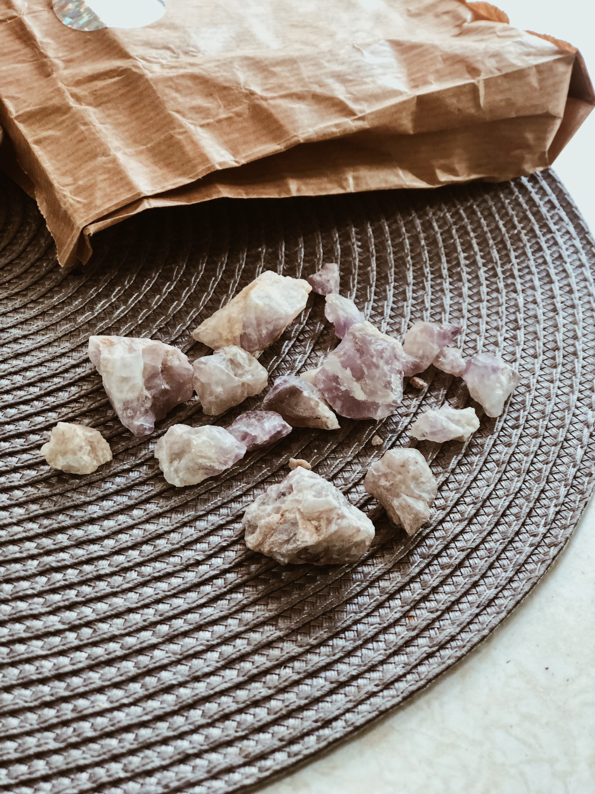 Jag har min ametist långt ned hängande på magen nu så den ska hjälpa min lite oroliga mage. Milo ska få en ametist under sin kudde då han drömmer mardrömmar ibland. Jag vet att det funkar då mina kristaller funkat klockrent tidigare. Jag lägger nog en under kudden också, bara för den lugnande effektens skull och för bättre sömn.