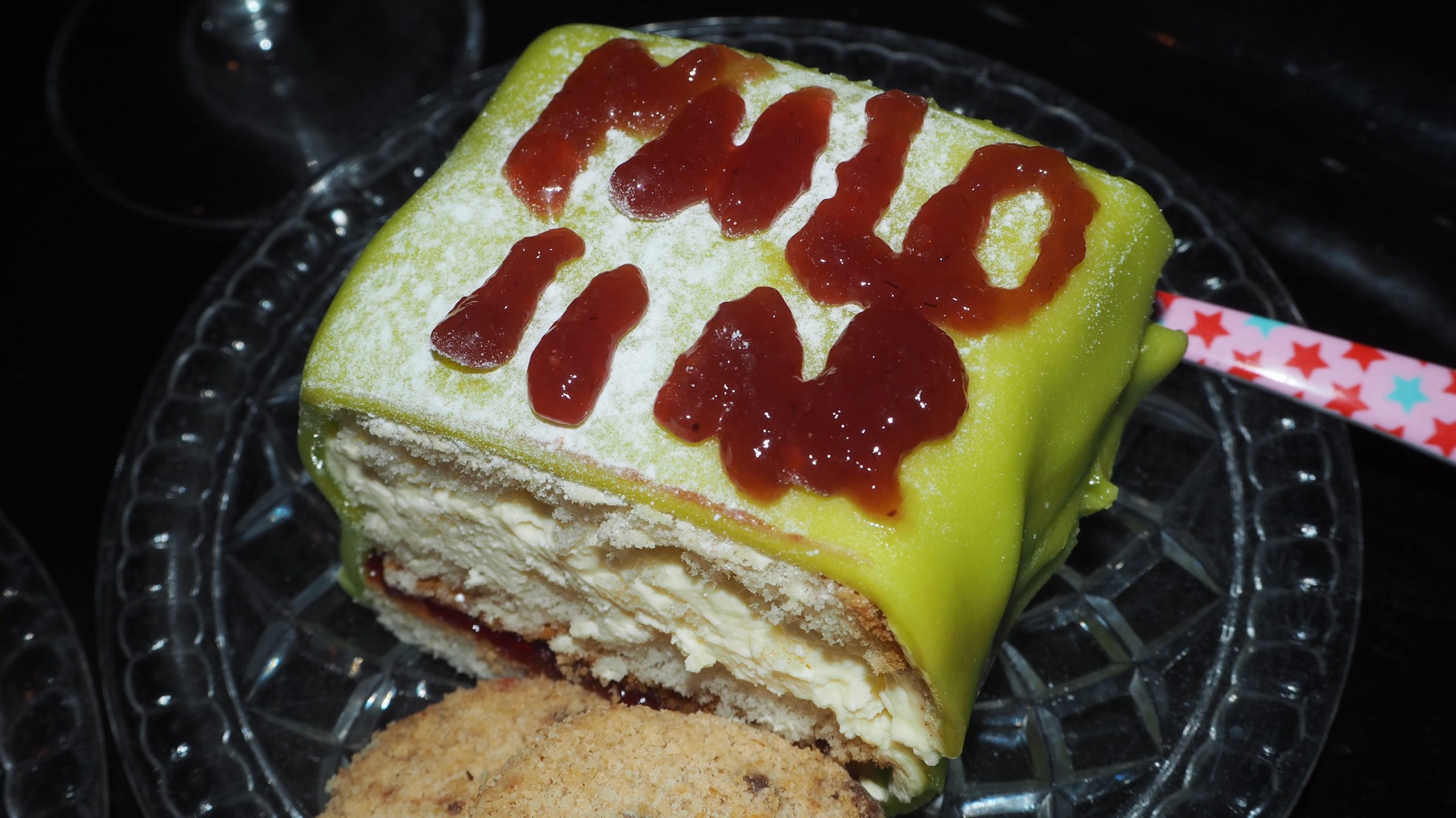 Köpte en liten bit prinsesstårta till frukost och så fick han festa till det med Nutella på mackan.