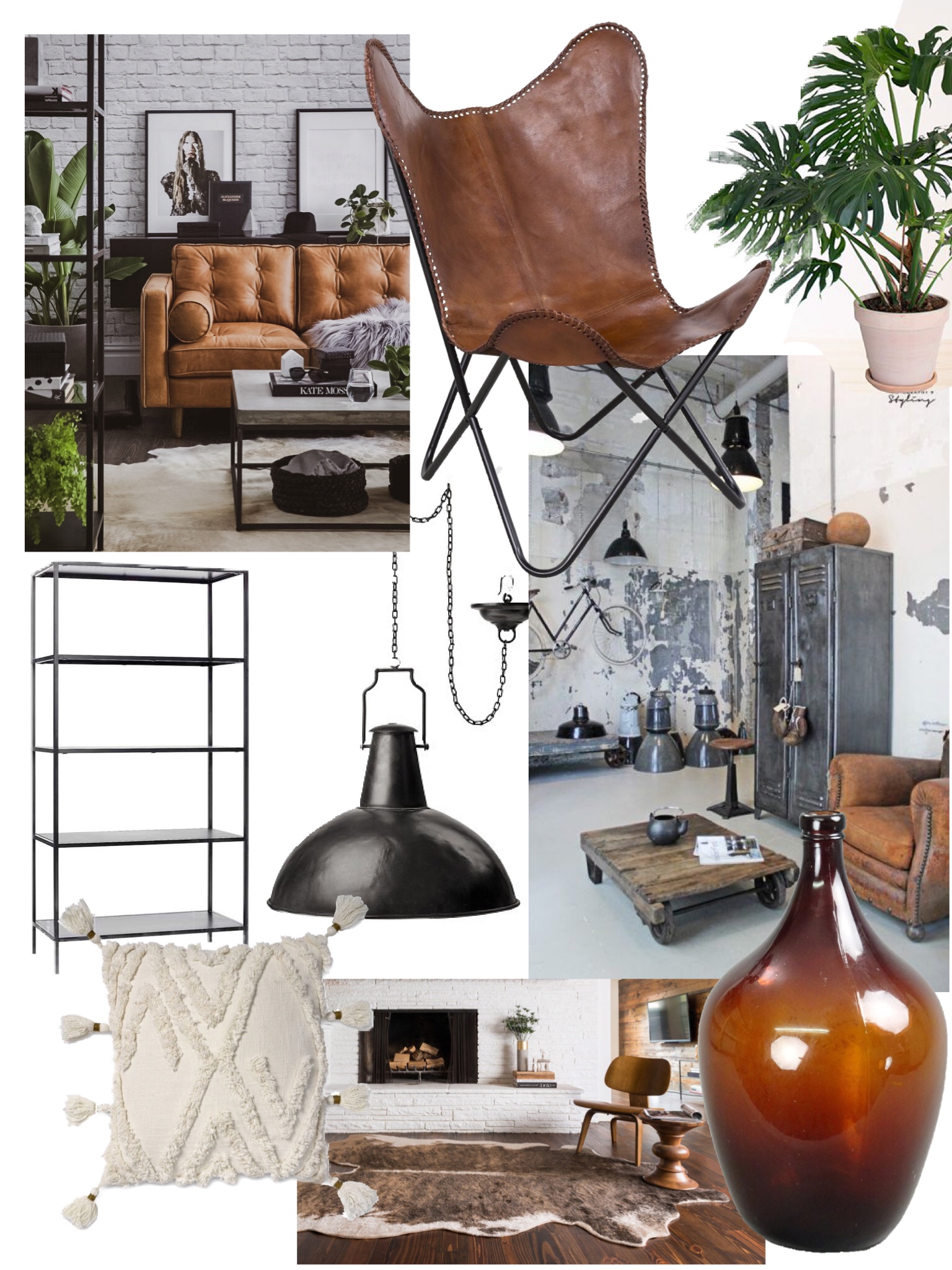 Här har jag tänkt lite mer industri över vardagsrummet. Bruna skinndetaljer. Naturfärgat möter den svarta lite kalla plåtkänslan. Basfärgerna är brun