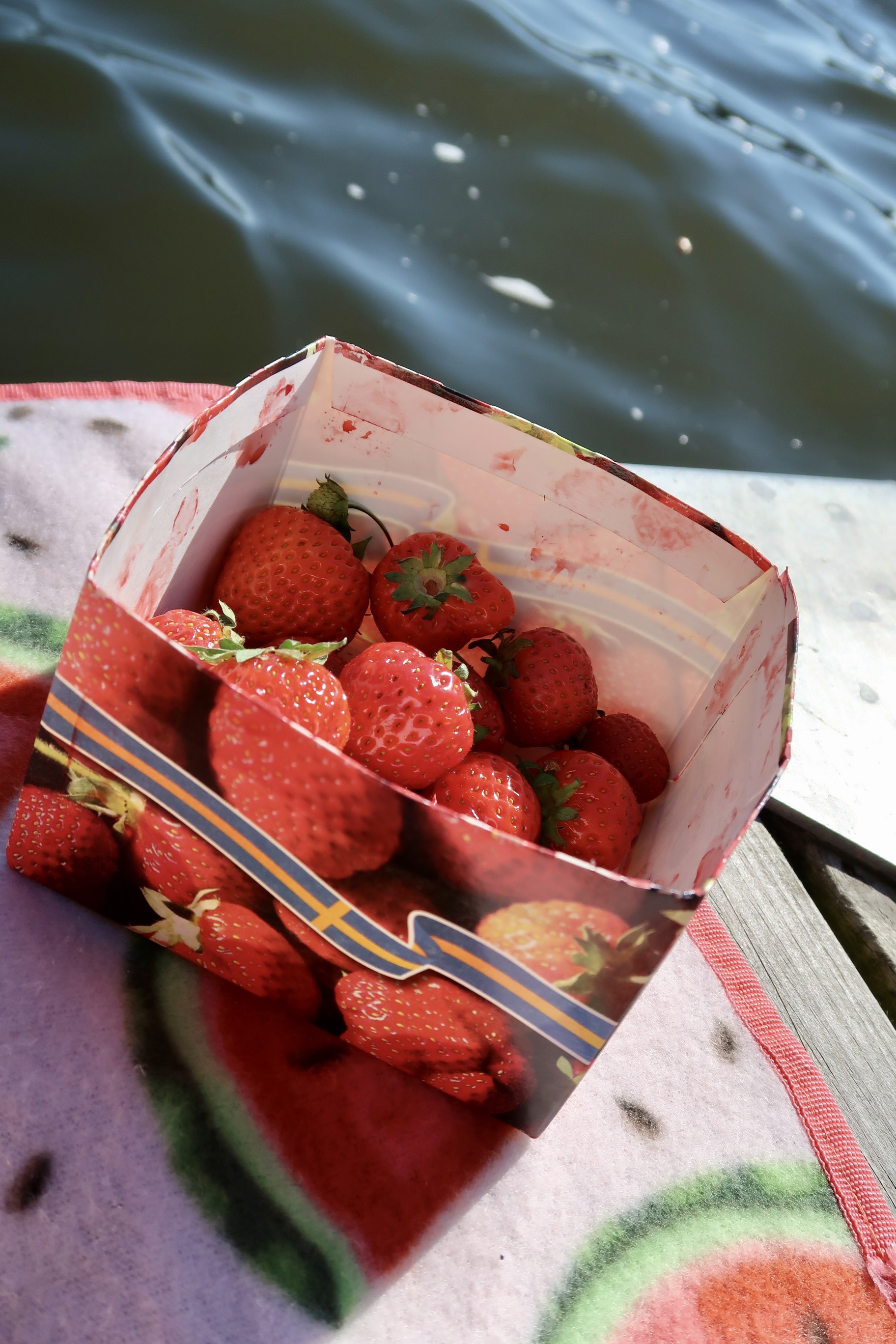 Vi köpte med oss lite godsaker till bryggan. Jag har pms och skulle kunna äta en ko typ. Vill äta något heeeeela tiden, det är helt sinnesjukt när det är som värst. Bra då är väl att sitta och tugga frukt och grönsaker än choklad och chips som jag egentligen är sugen på. Går i en del sånt också, tro mig. 😅