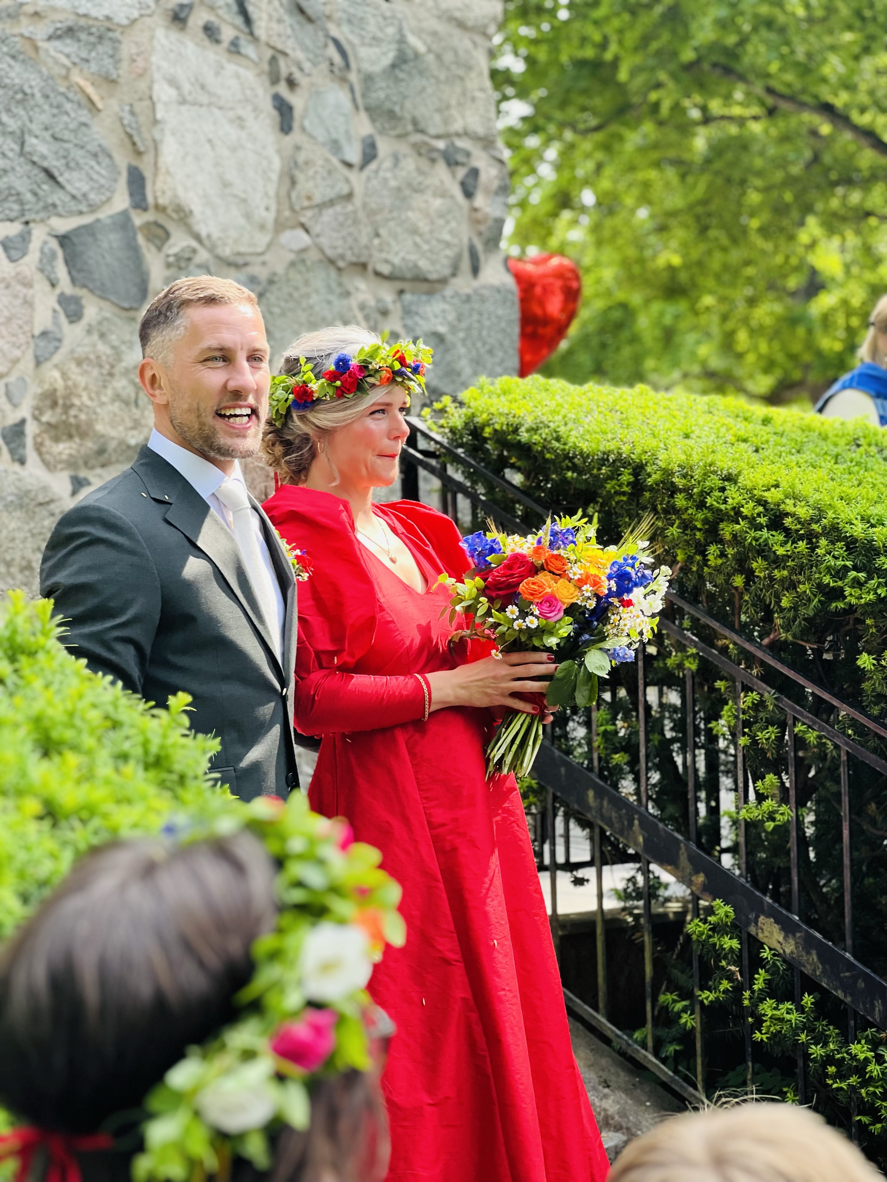 Alltså…… 🥹❤️🌿 Så vacker med sin röda klänning. Den var verkligen helt ljuvlig och sydd av hennes svärmor.