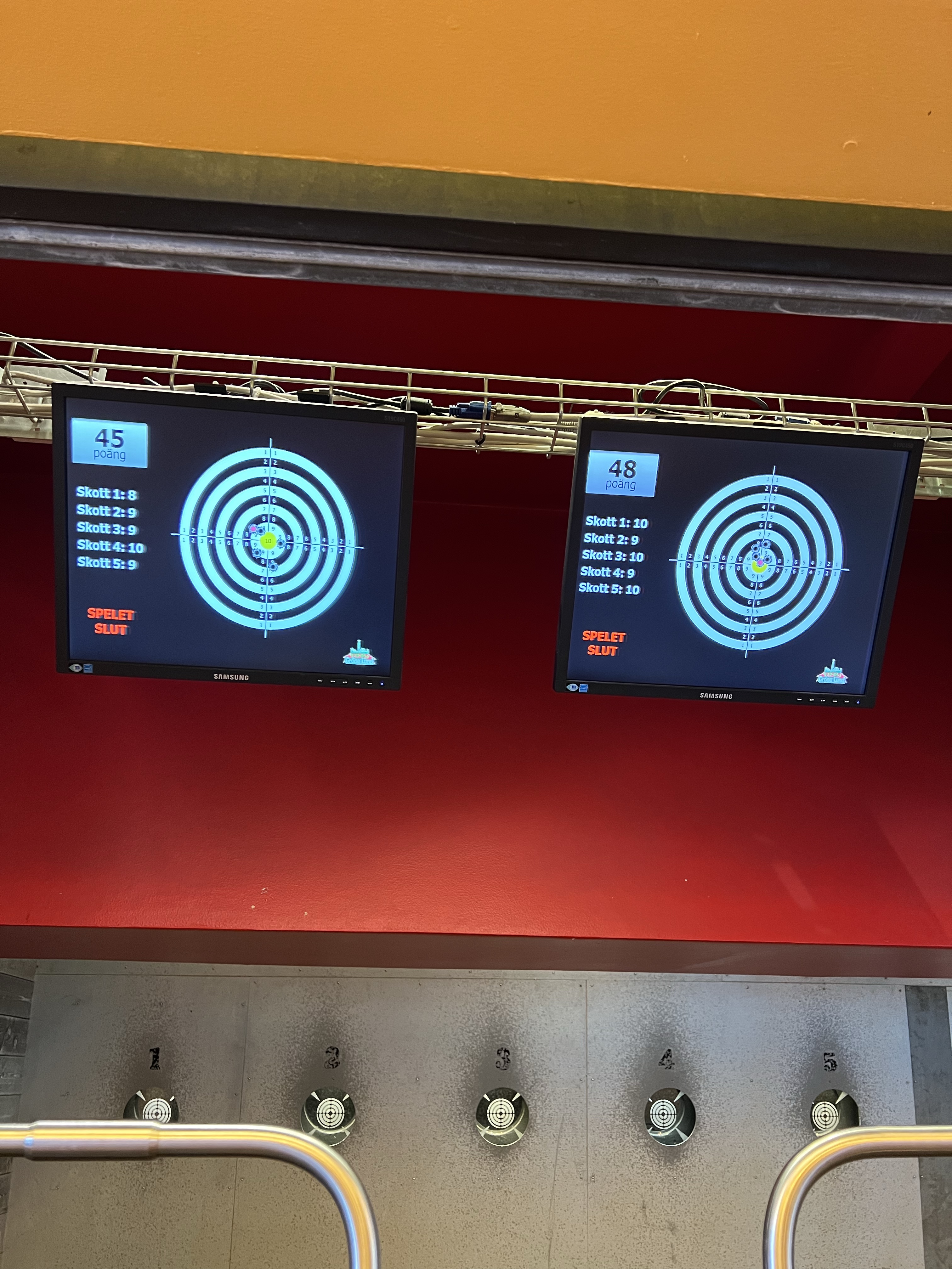Vi var rätt duktiga på och skjuta också. 😇 Bland det roligaste på hela grönan för en annan som inte åker karuseller. Haha, är man för liten som mig så får man använda vapnet lite knasigt också. 🤣