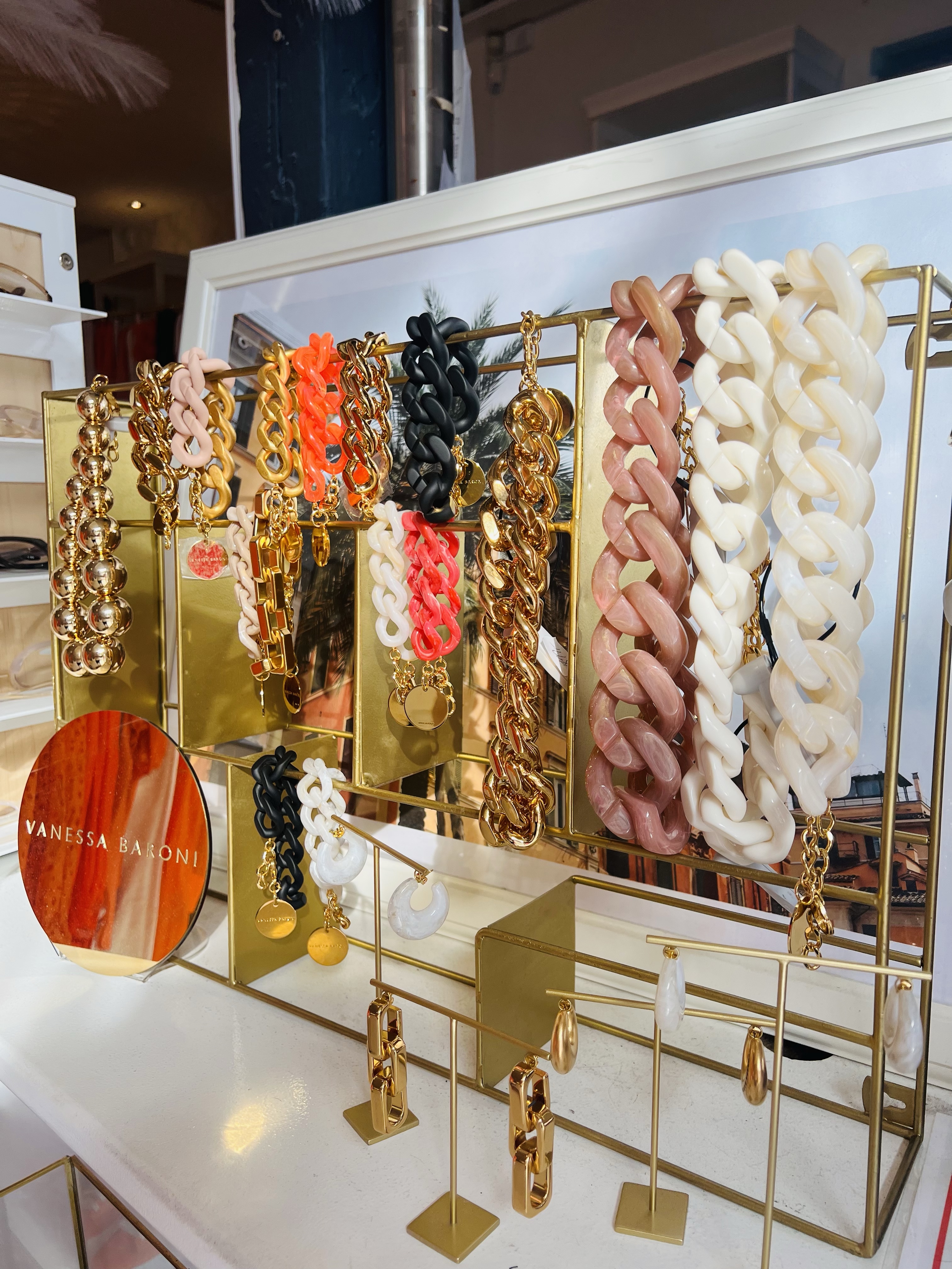 Smycket längst till vänster blev jag helt kär i också så det fick också följa med hem. Vanessa Baroni, tydligen bland det hetaste i smyckesväg man kan ha nuförtiden. Tjejerna på Plain Vanilla berättade att de bara hinner få in dom så tar dom slut. HÄR hittar ni smyckena.