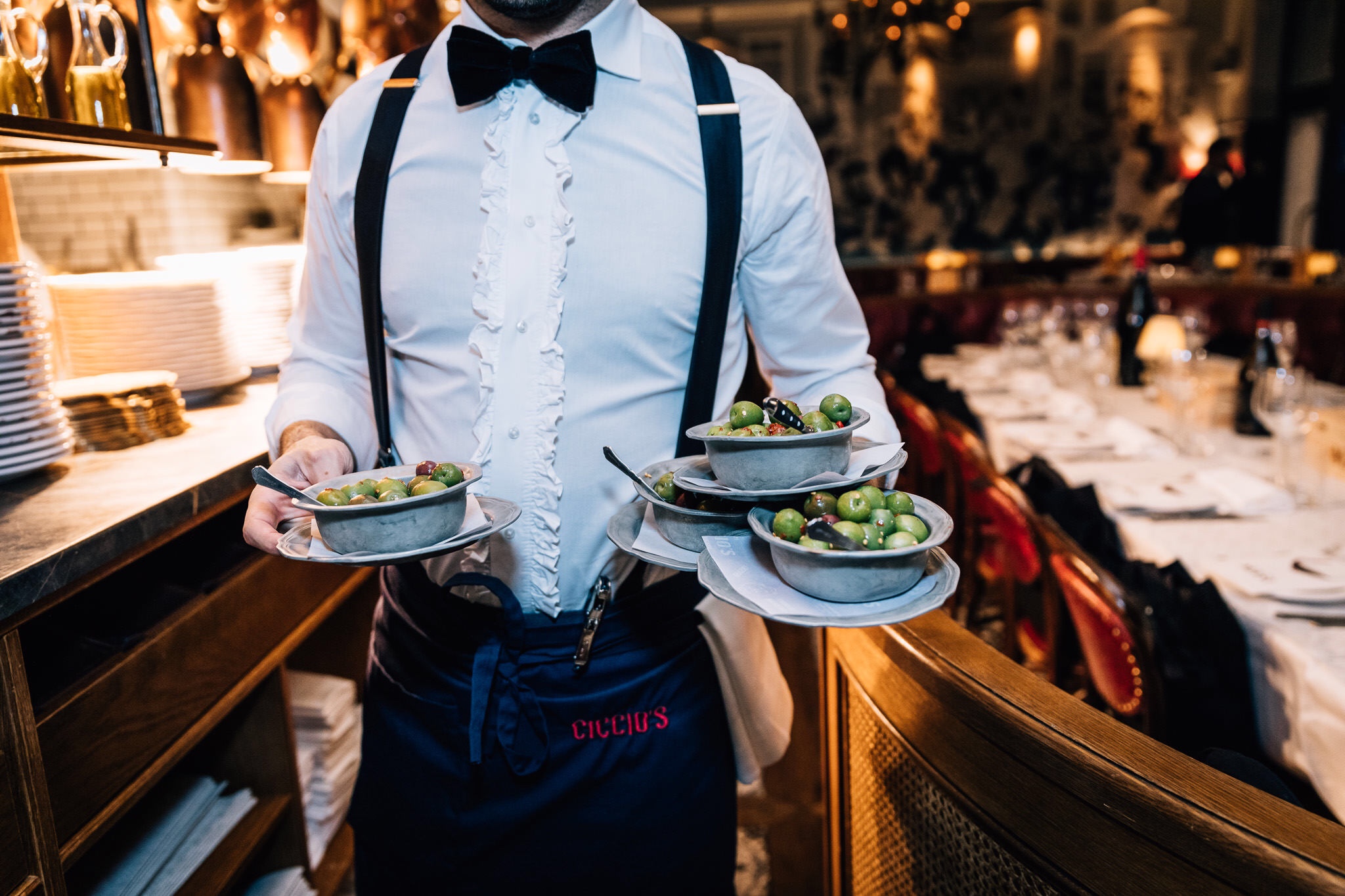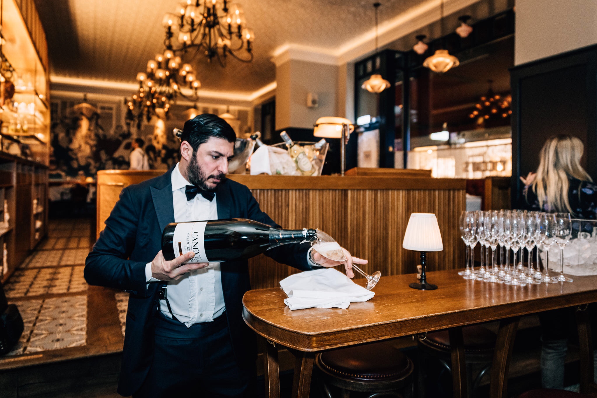 Innanför dörren stod ägaren av restaurangen och hällde upp bubbel till oss! En riktig Italienare i snyggaste outfiten.