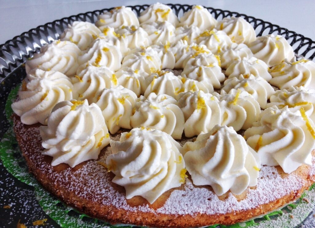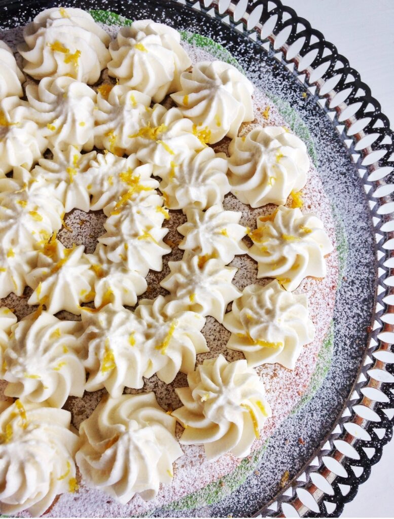 7. Tag ut och låt svalna. Vispa grädden och riv citronen. Toppa med det och pudra sist över lite florsocker.