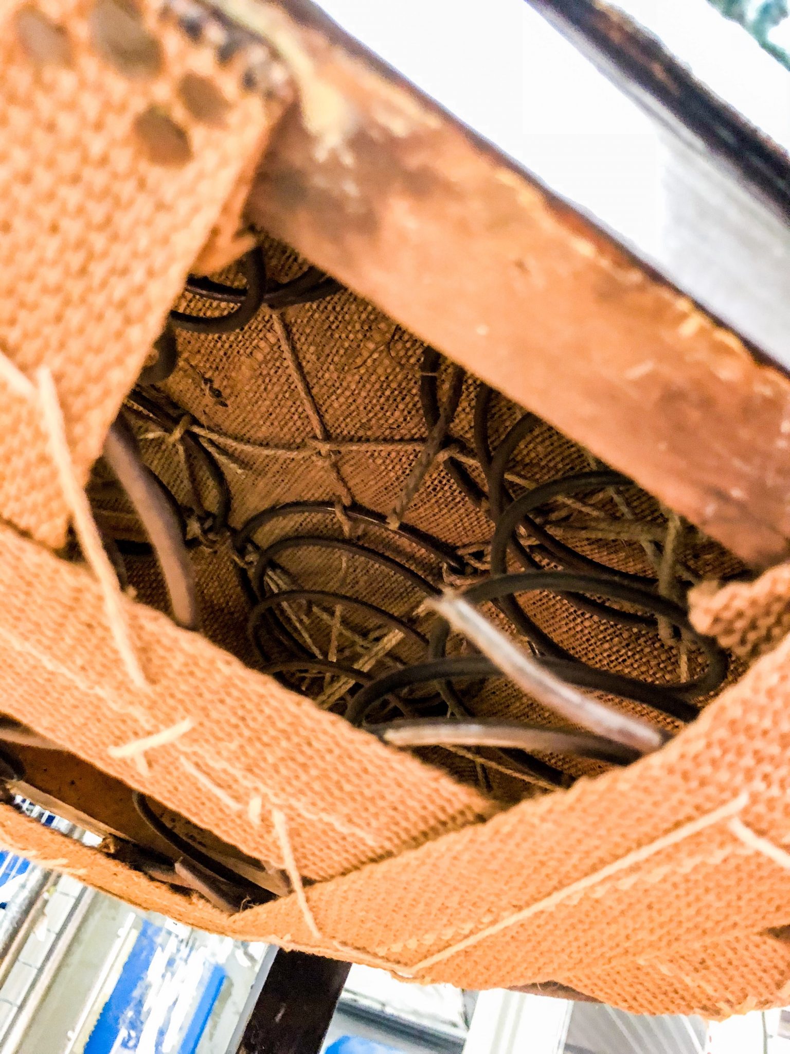 Såå coola stolar. Under kan man se hur gamla det är med den här fjädringen. Välbehållna förutom lite slitage i sitsen, annars perfekt skick. Kommer bli svårt att sälja känner jag nästan….