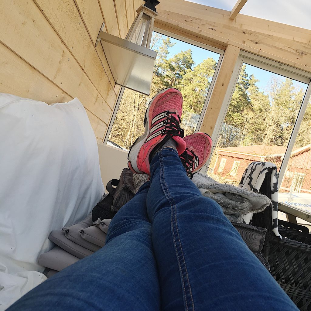 Vet ni hur mysigt det var att få lägga sig i uterummet när vi kom hem? Ögonen gick i kors av trötthet verkligen. Så mysigt när Tony la sig bakom mig en stund innan han slog på grillen. Han orkade laga mat, inte jag….