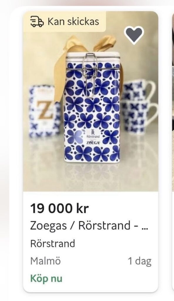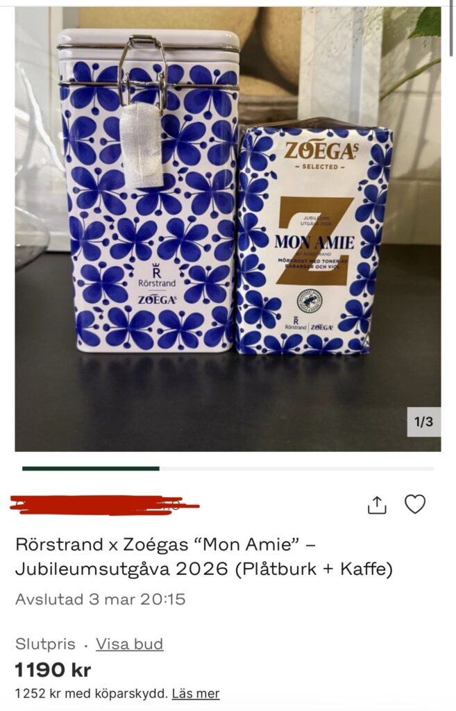 Tappade också hakan när jag såg att slutpris på en burk och kaffe slutade på 1190 kr på Tradera!