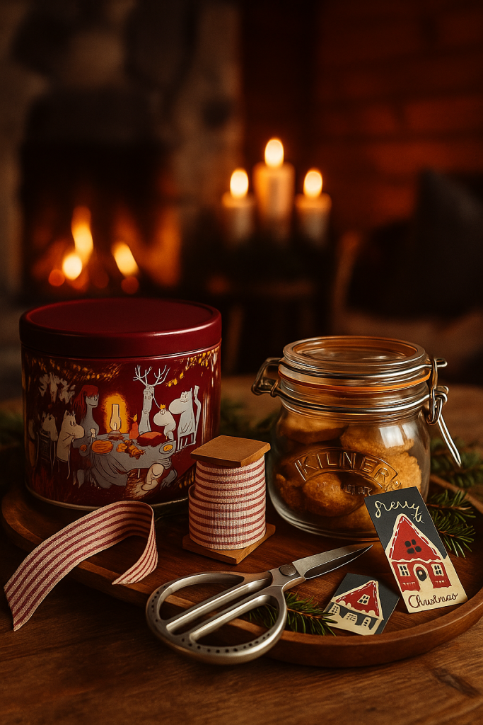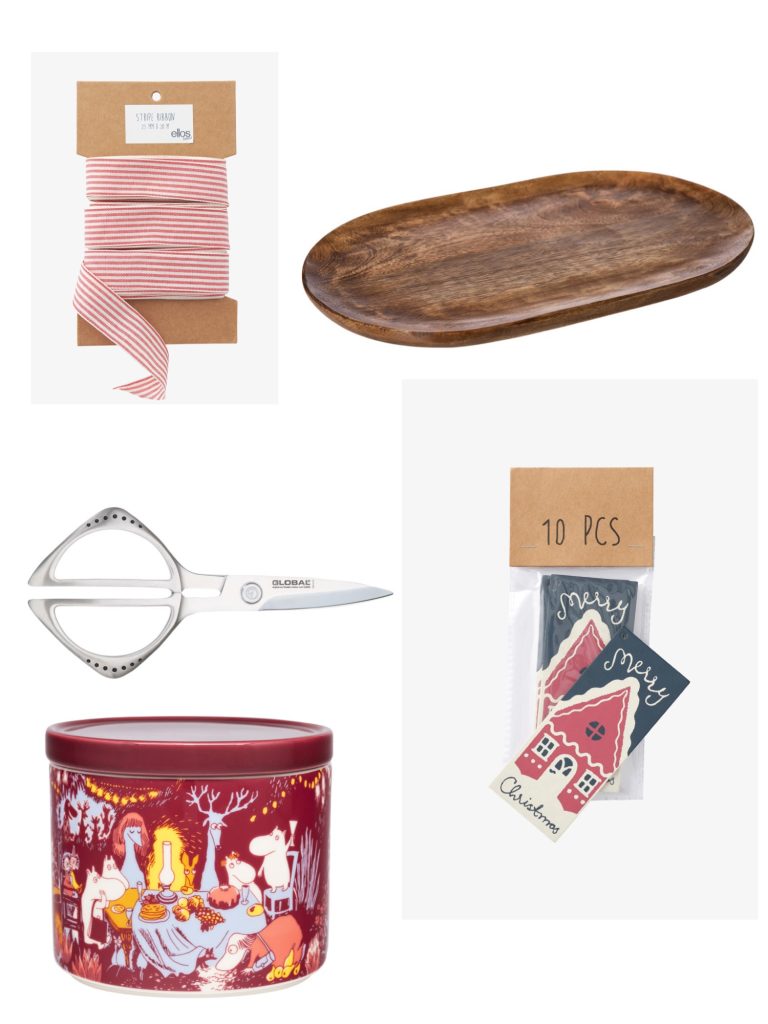 Ernst TrÀbricka // Lyxig global sax // Presentband // Juletiketter // Mumin Kakburk