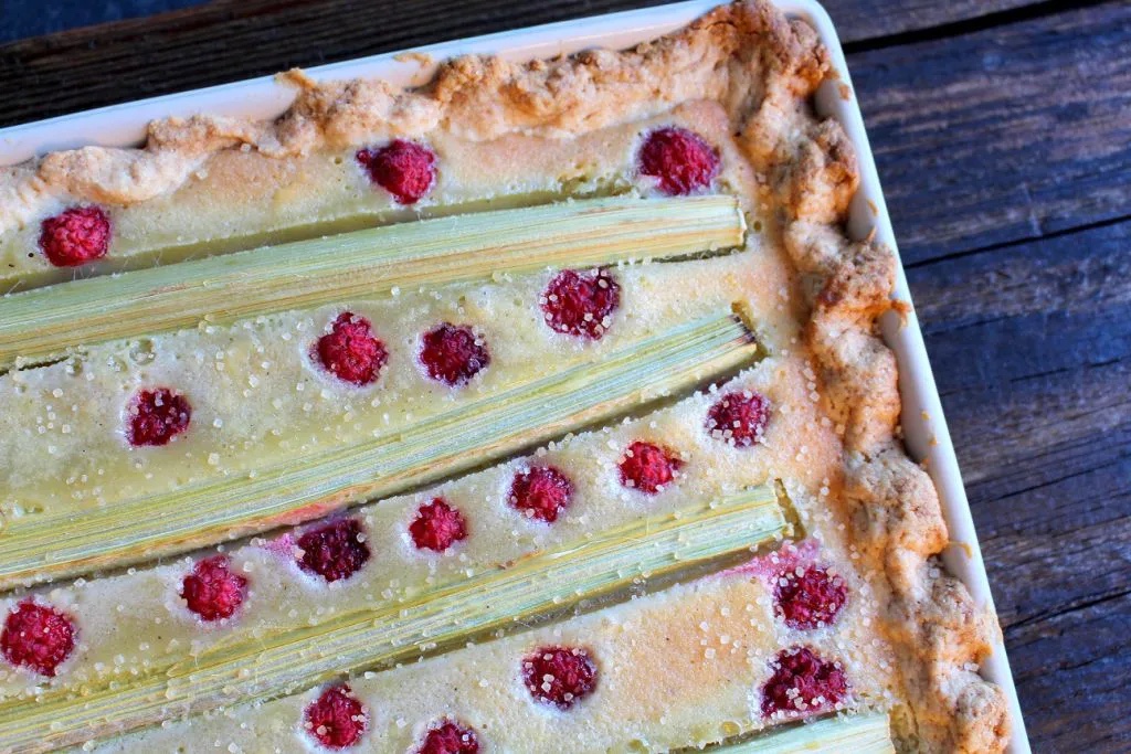 Rabarber- och hallonpaj med kladdkakefyllning