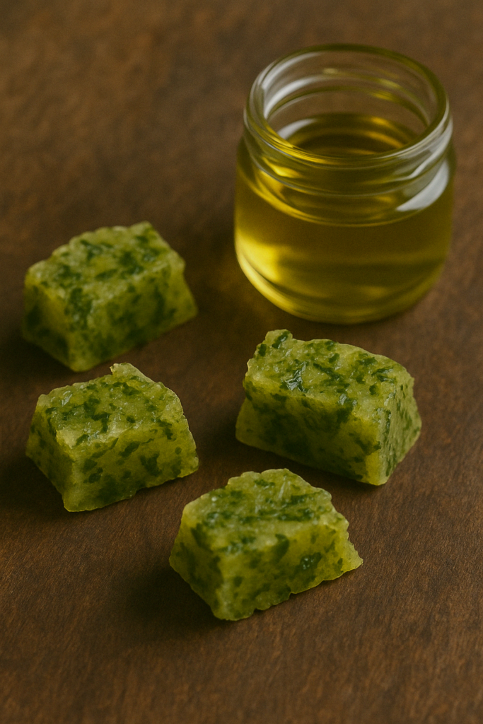 Hacka färska örter och lägg i iskuber med olivolja. Perfekt att ha till stekning, soppor eller pasta. Smaken bevaras på ett magiskt sätt!