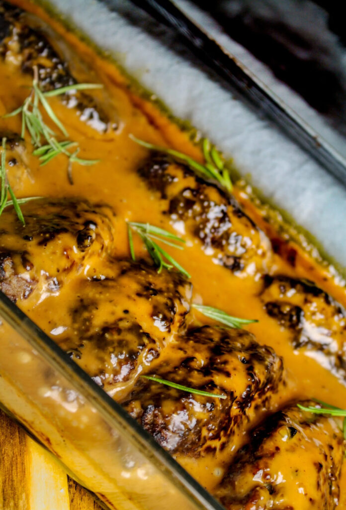Ost och Baconfyllda köttfärsbiffar med parmesansås (<klicka för recept)