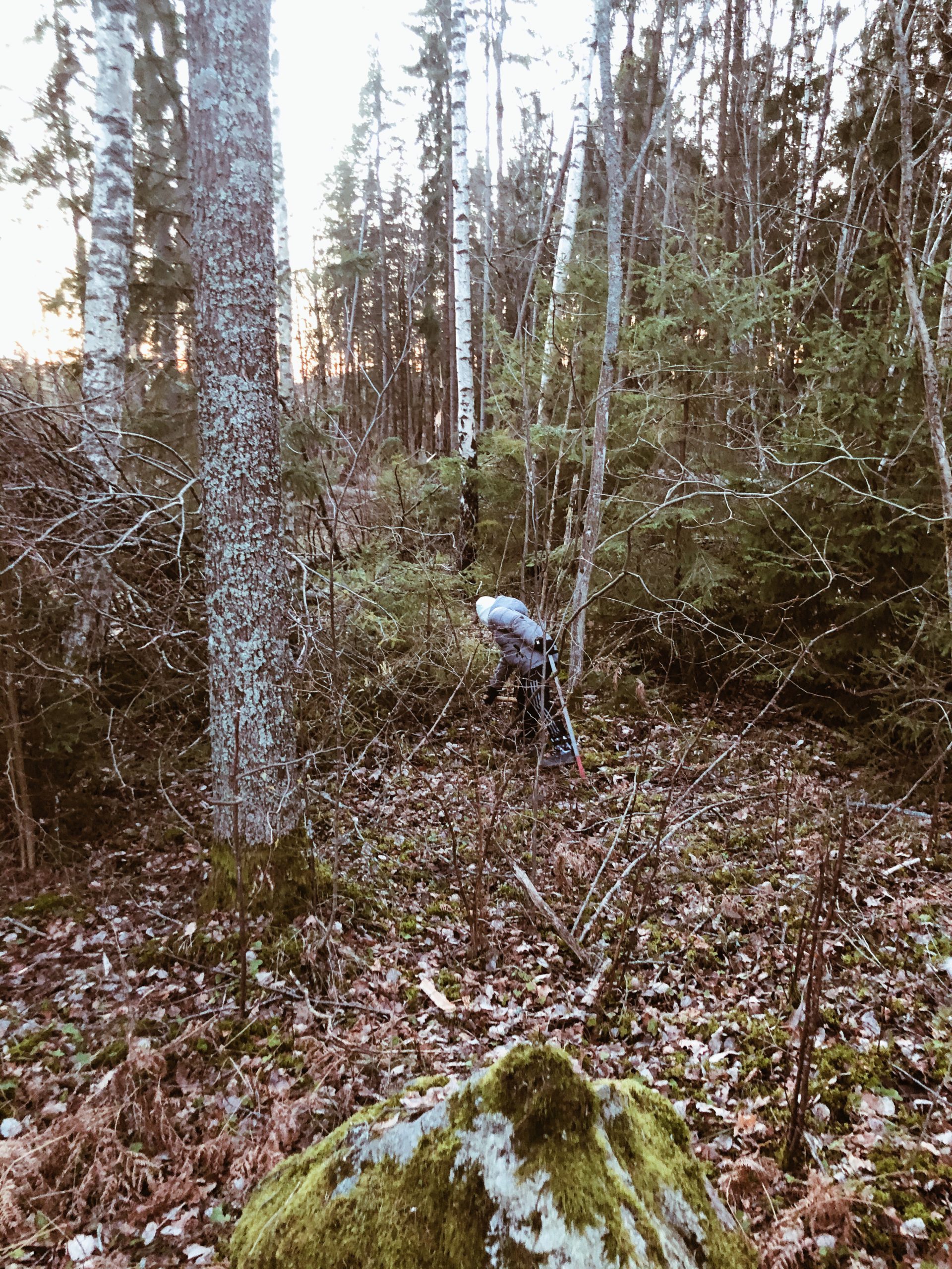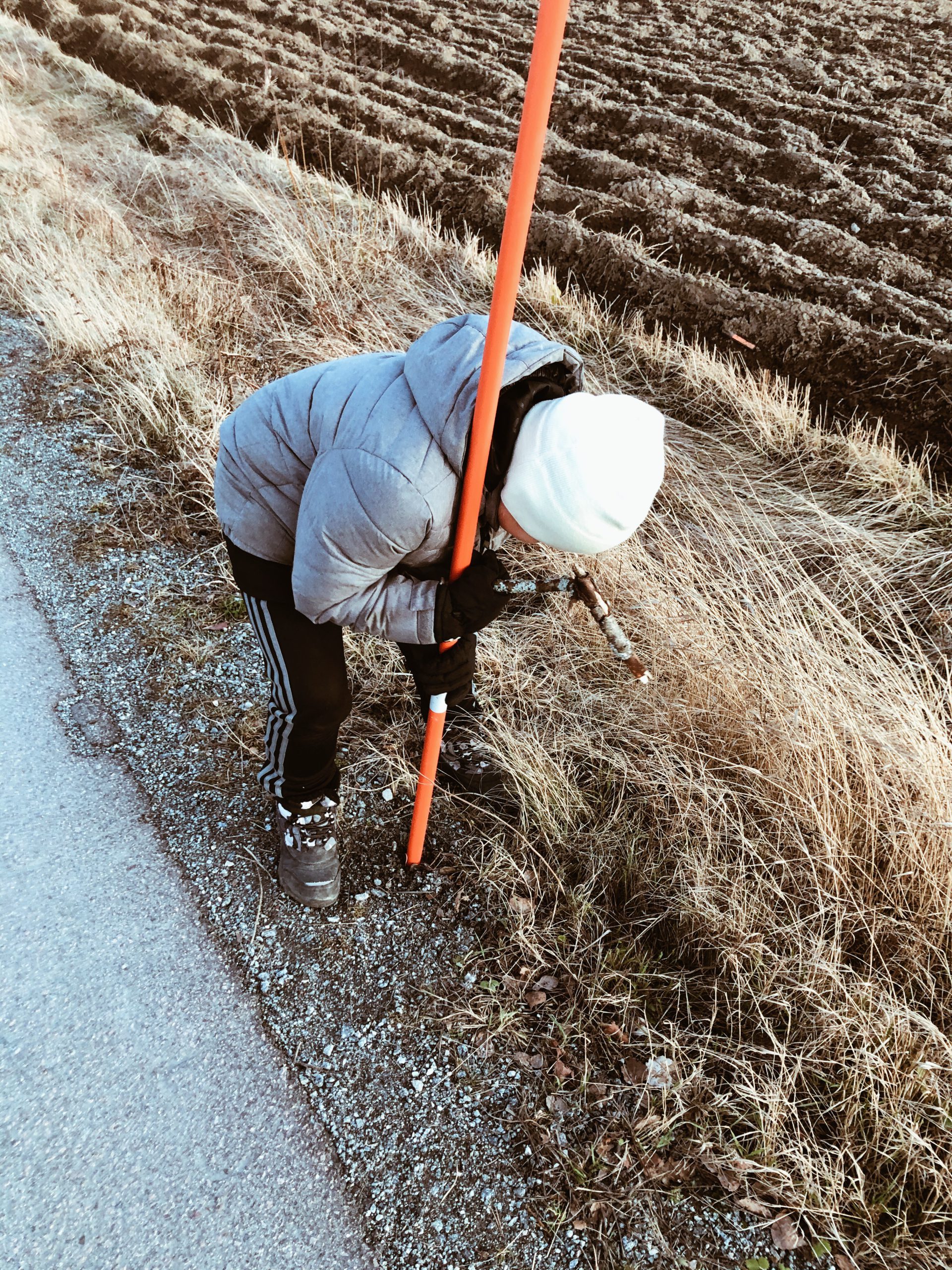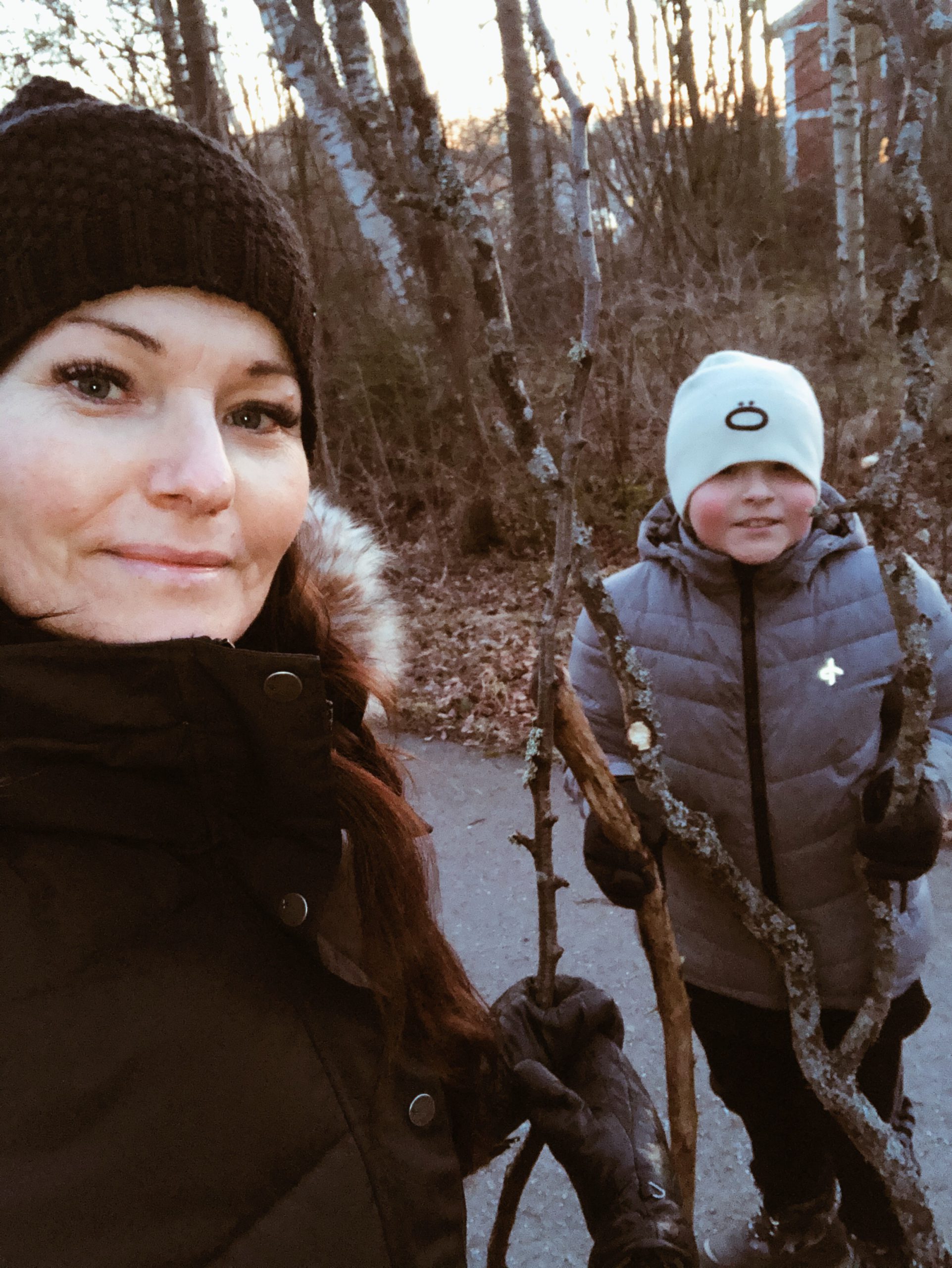 Det plockades pinnar stora som träd. Haha…. ni vet ungar och en riktigt bra pinne. 🥰 Snöpinnen försökte han att sätta fast igen men det gick inte.