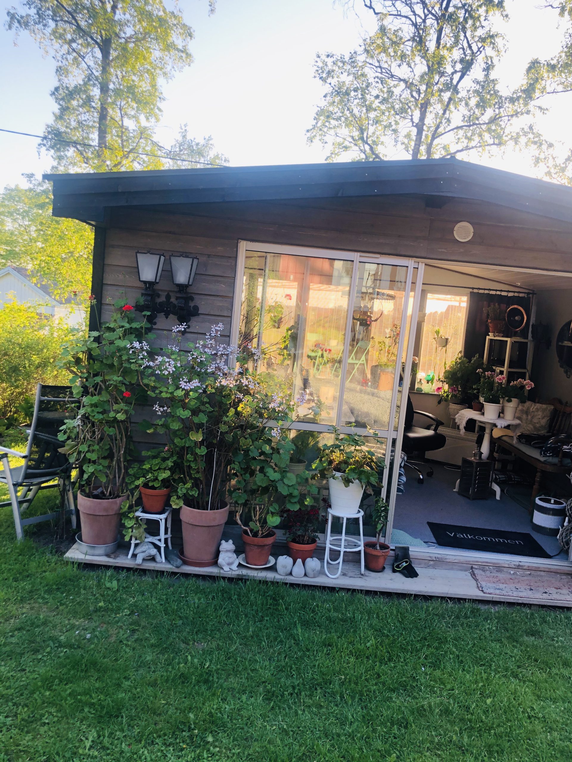 Idag hittade jag den här sötisen i trädgården. Satt på en pinne i en stor kruka. Deras uterum som dom byggt blev verkligen så fint, där inne trivs man kan jag säga.