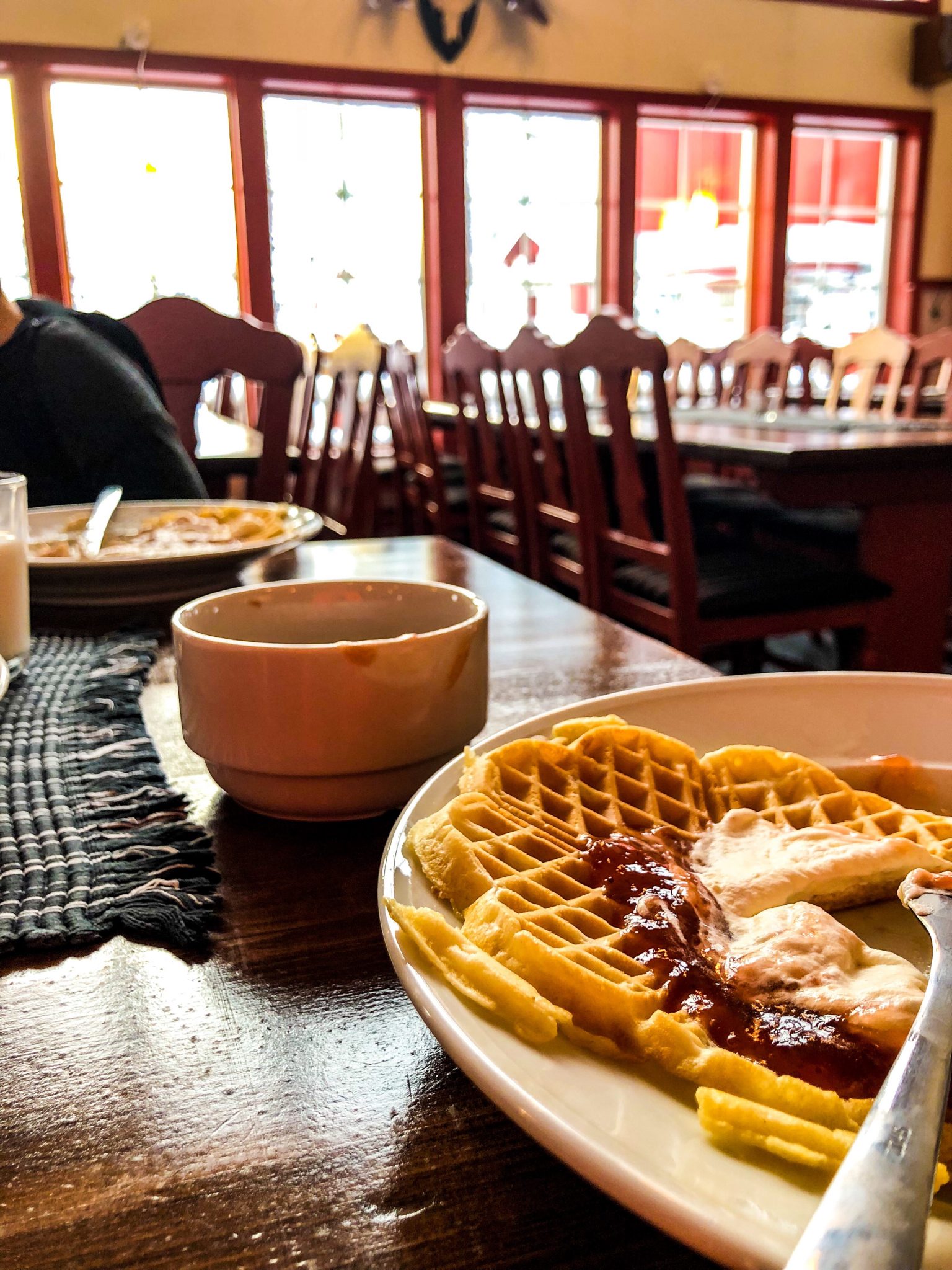 Det var rart med lite våfflor och varmt te till lunch. Vi käkade på bäverhyddan som de heter och de hade precis slagit upp dörrarna. Allt öppnade här igår så allt är precis nystartat för året. Det satt två i restaurangen när vi kom men annars var vi helt själva.