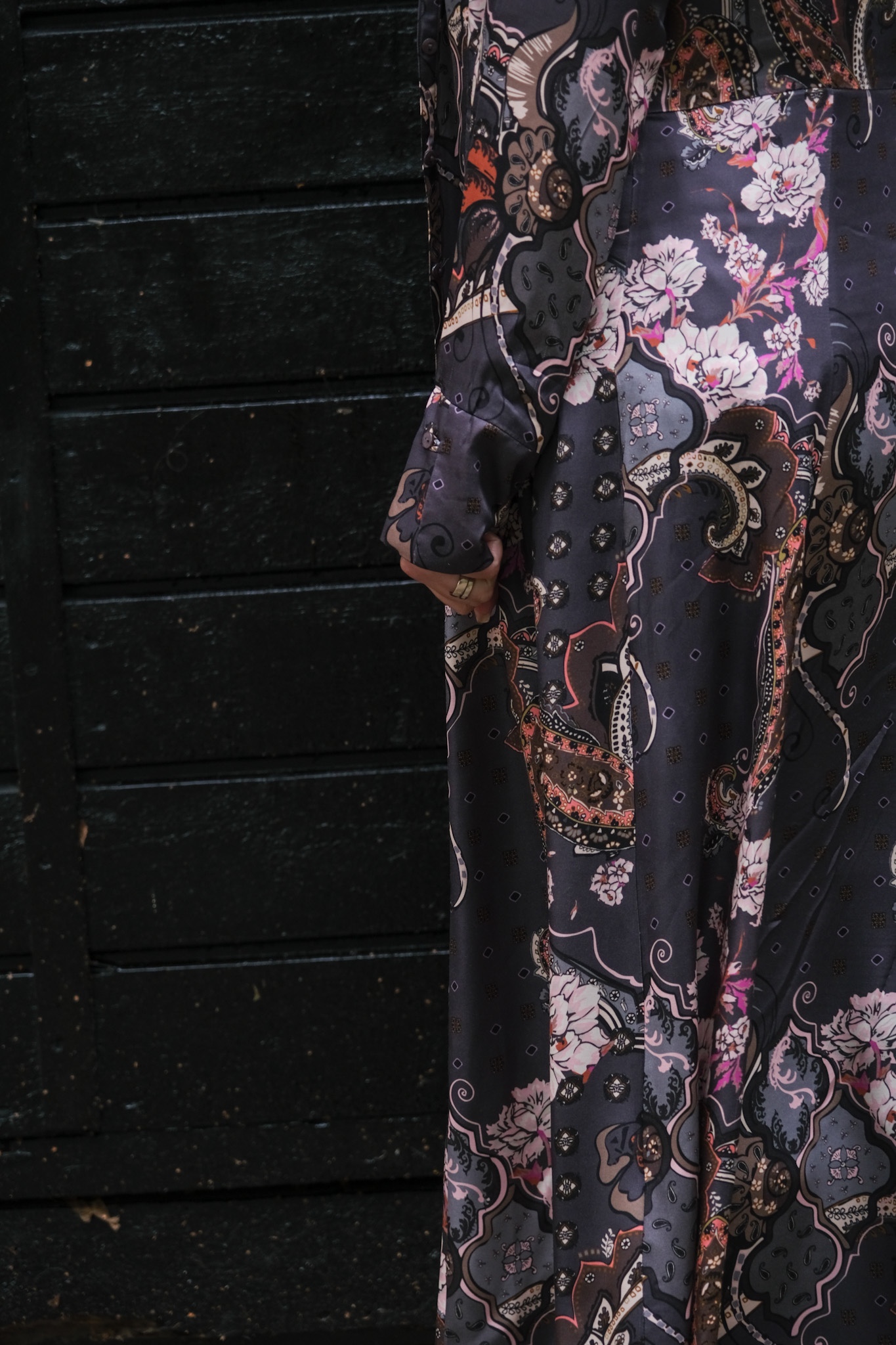Alltså, denna klänning alltså…. Jag blev sååå kär. Materialet går inte ens att beskriva för det är så följsamt, mjukt och lyxigt. Ekologisk viskos och rayon, bland det lyxigaste jag känt på min kropp. Trycket är jag sååå förälskad i. Såå fin form på den. Åh vad jag älskar den. Jag har burit ned knäppt som en ”vanlig” klänning, sedan har jag haft den som på bilden. Då blir den som en kaftan så användningsområdena är fler för denna vackra skapelse. Finns i en jättefin blå färg också.