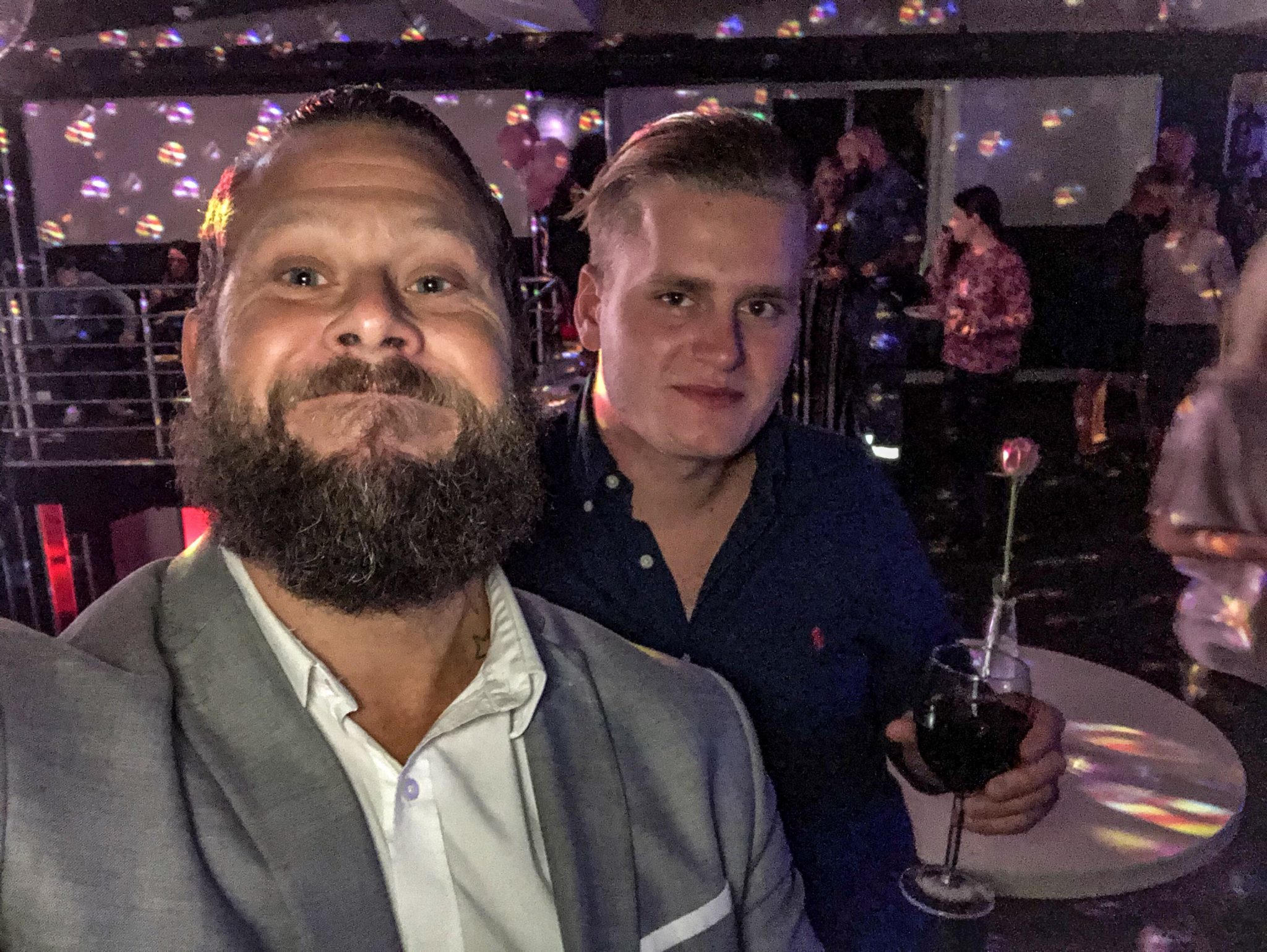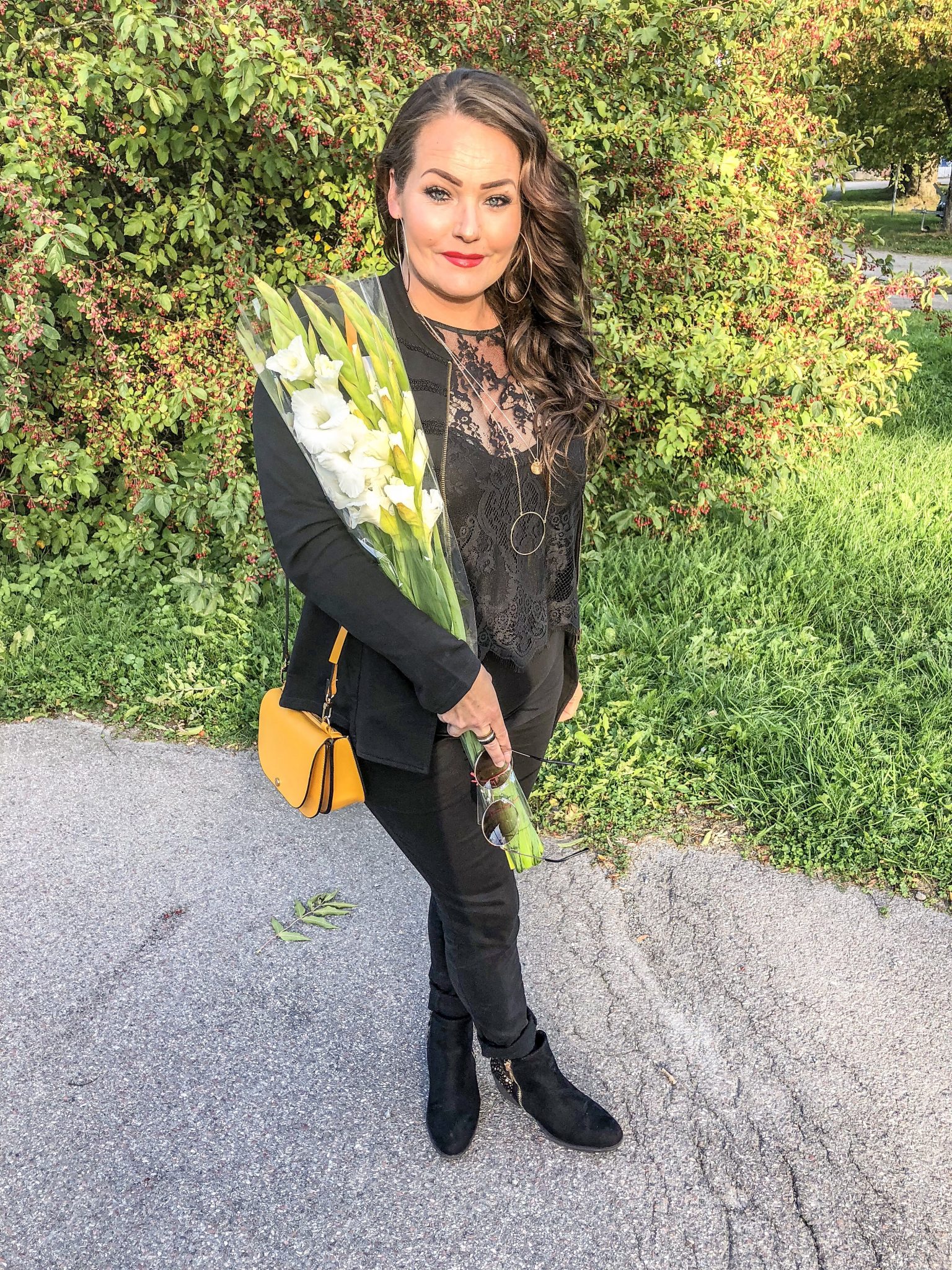 Efter vi kom hem så var det bara till att svida om i raketfart för att göra sig klar till Saras 40 årsskiva. Hade på mig nya jeans och nya kavajen, alltså…. jag säger bara myskläder. Jeansen måste jag köpa i fler färger. Så galet sköna och mjuka på. Massor med stretch! Om du handlar så köp en stl mindre, dom är stora i storlek.
