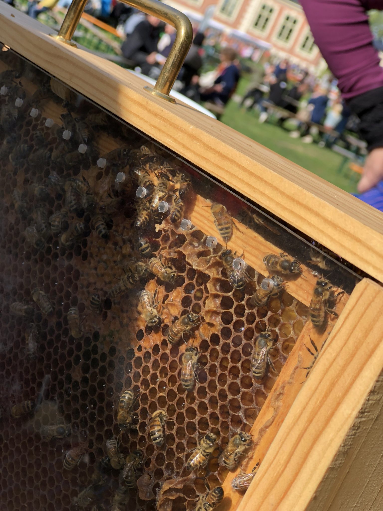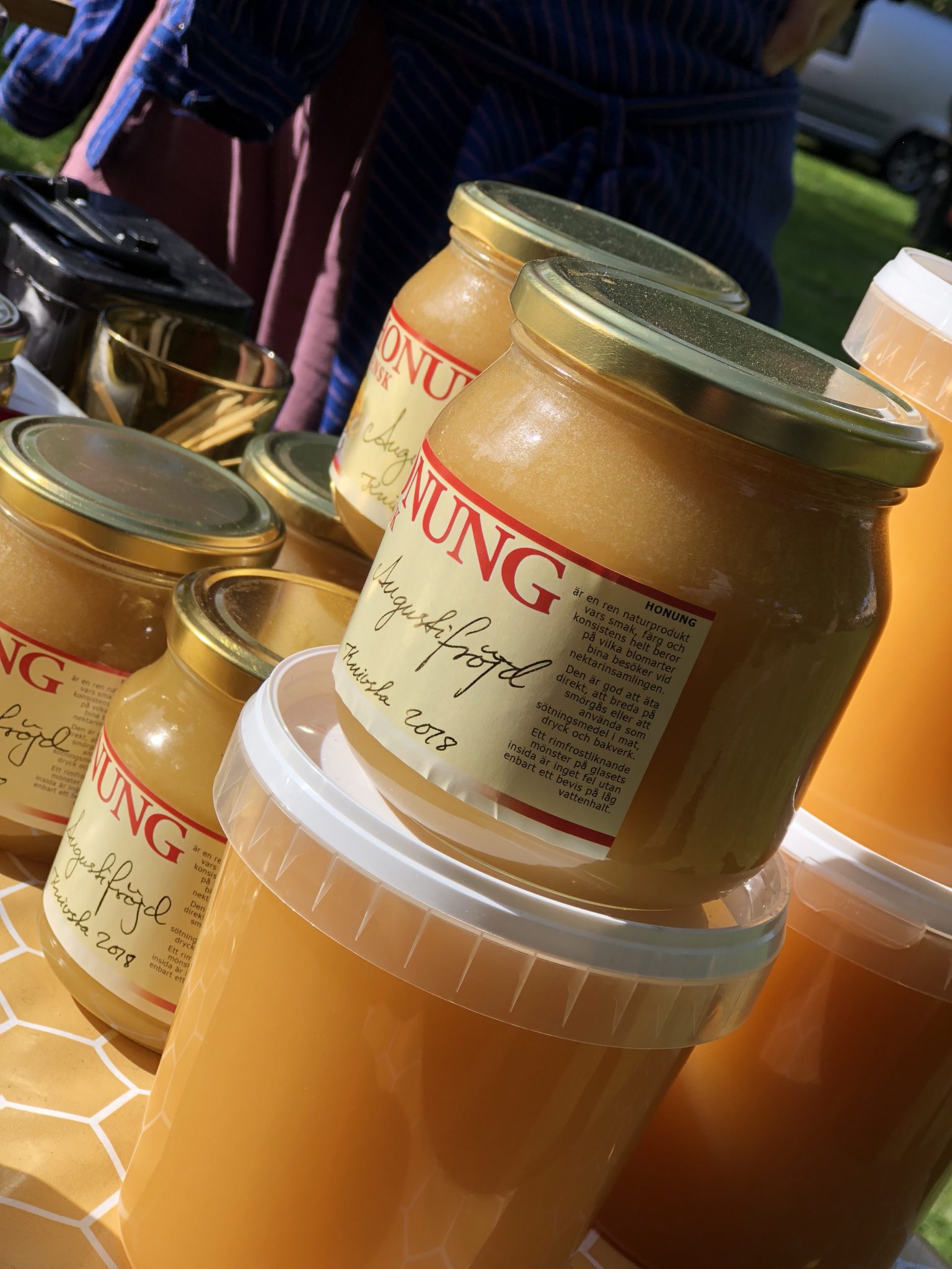 Så mycket folk och massor med härligt att handla. Som här, färsk honung som dessa små bin jobbat fram.