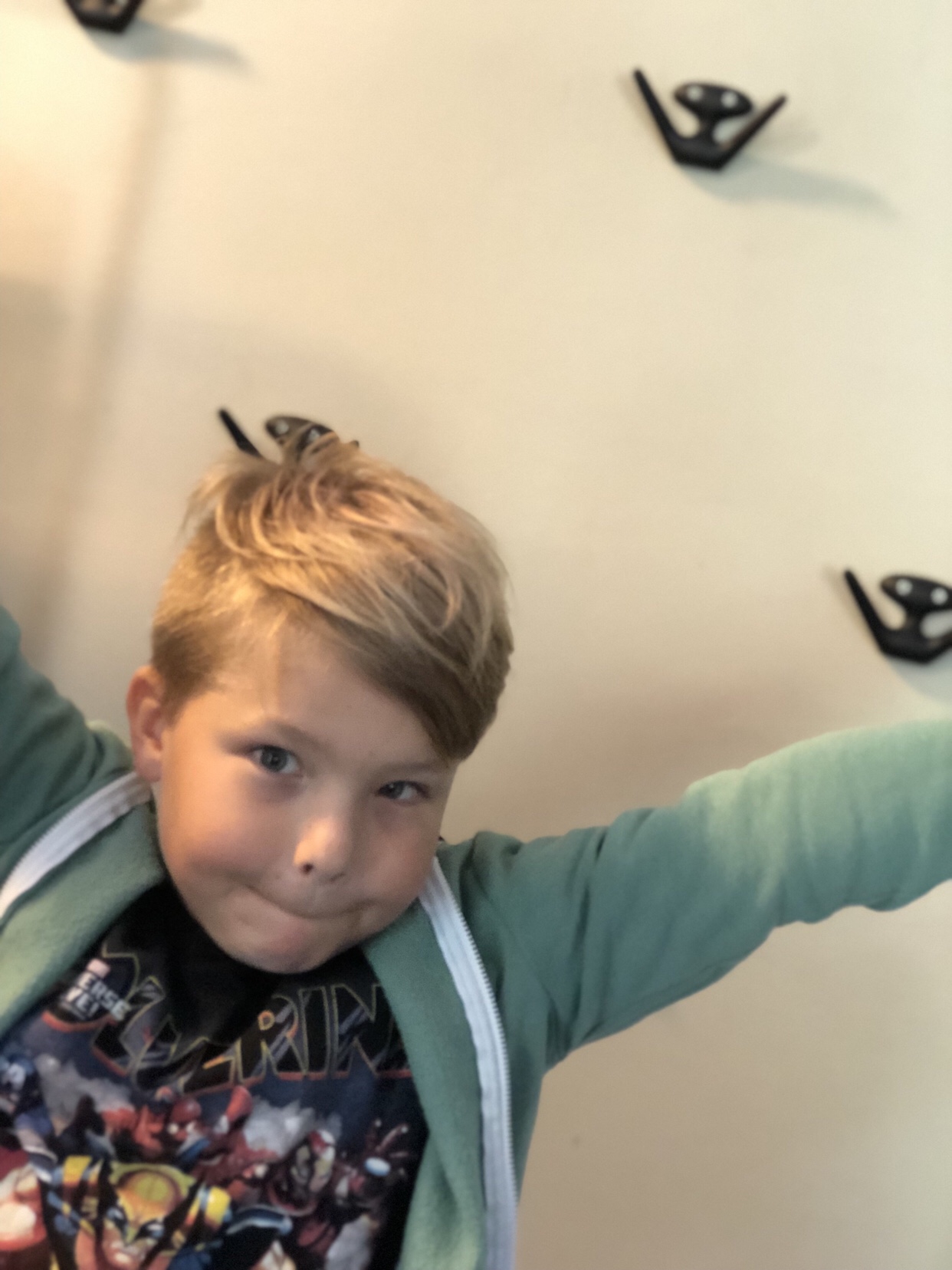 Roliga krokar på väggen som såg ut såhär tyckte Milo.