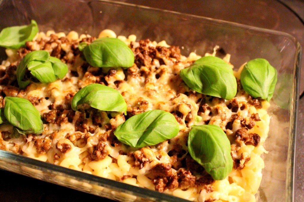 Köttfärsgratäng (här med quornfärs, receptet är för bådadera)