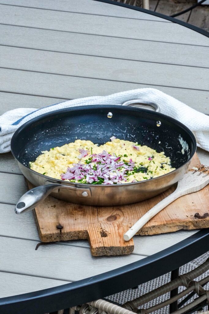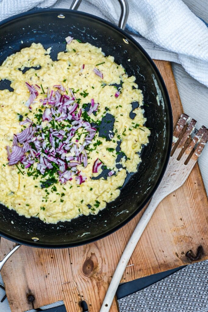 Helgen är här med total helgkänsla. Vår helg står helt öppen, jag finurlat på om man skulle starta grillen idag? Får se om vädret tillåter? Finns det något bättre än en lördagmorgon, med en lång, härlig lördagsfrukost? En sådan där morgon när kaffet smakar extra gott, köket doftar nyrostat bröd och man faktiskt har tid att njuta av en lång frukost. Och vad passar bättre än en riktigt krämig och smakrik äggröra?