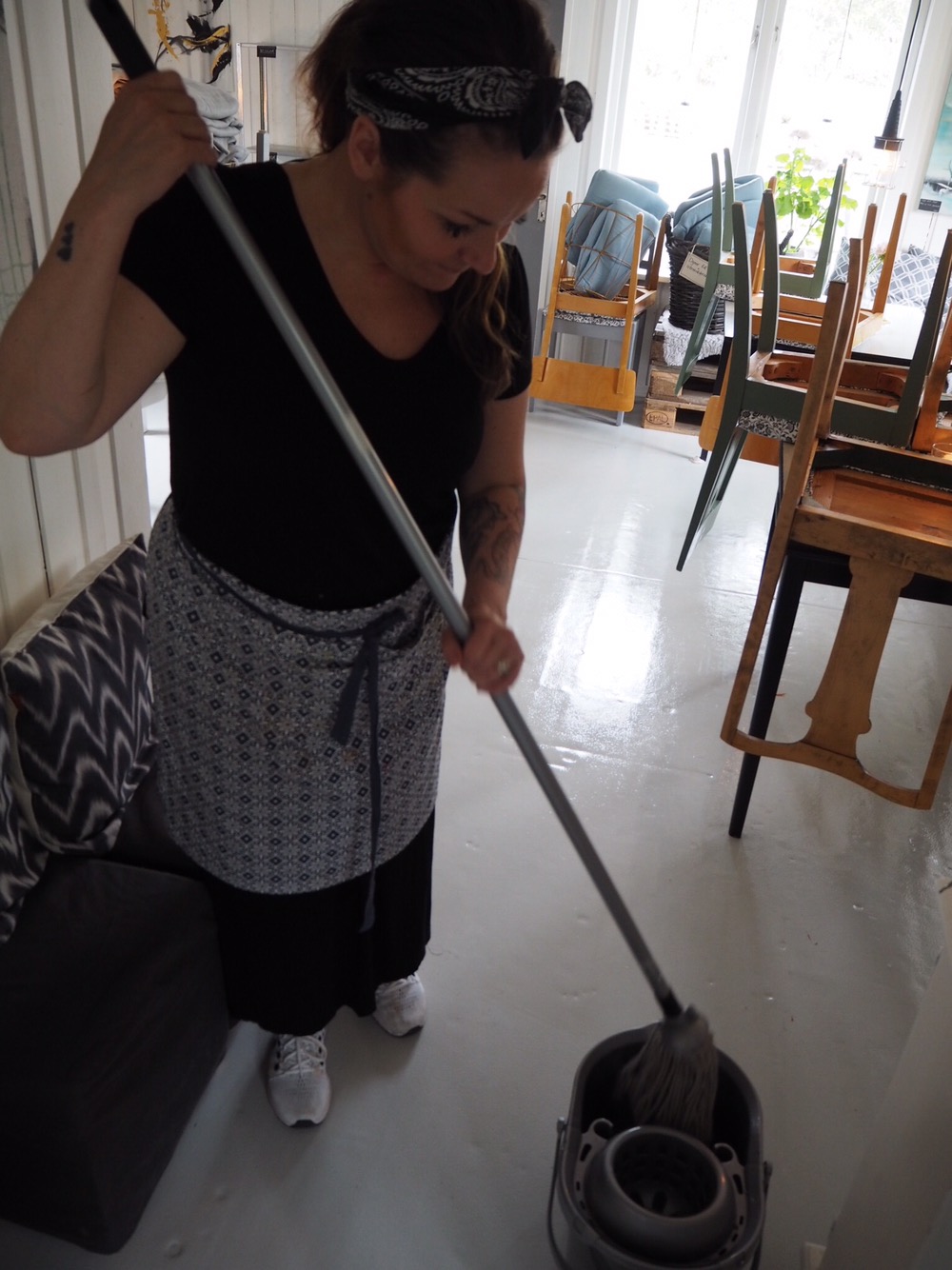 Den här bilden är tagen efter stängning idag. Måste skura varje dag, det är superskräpigt bara efter en dags öppet.