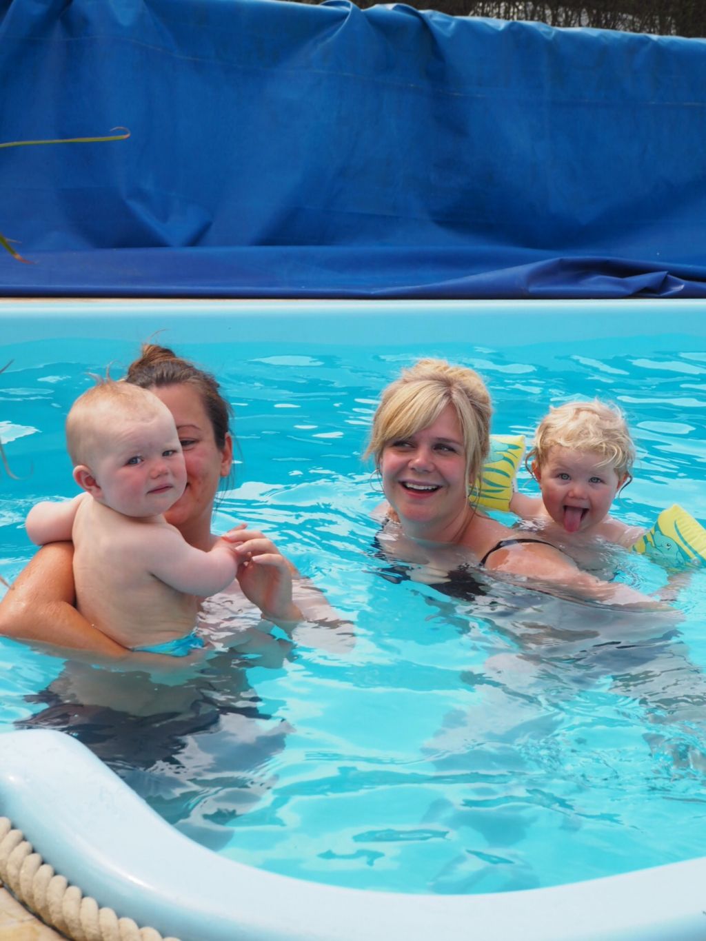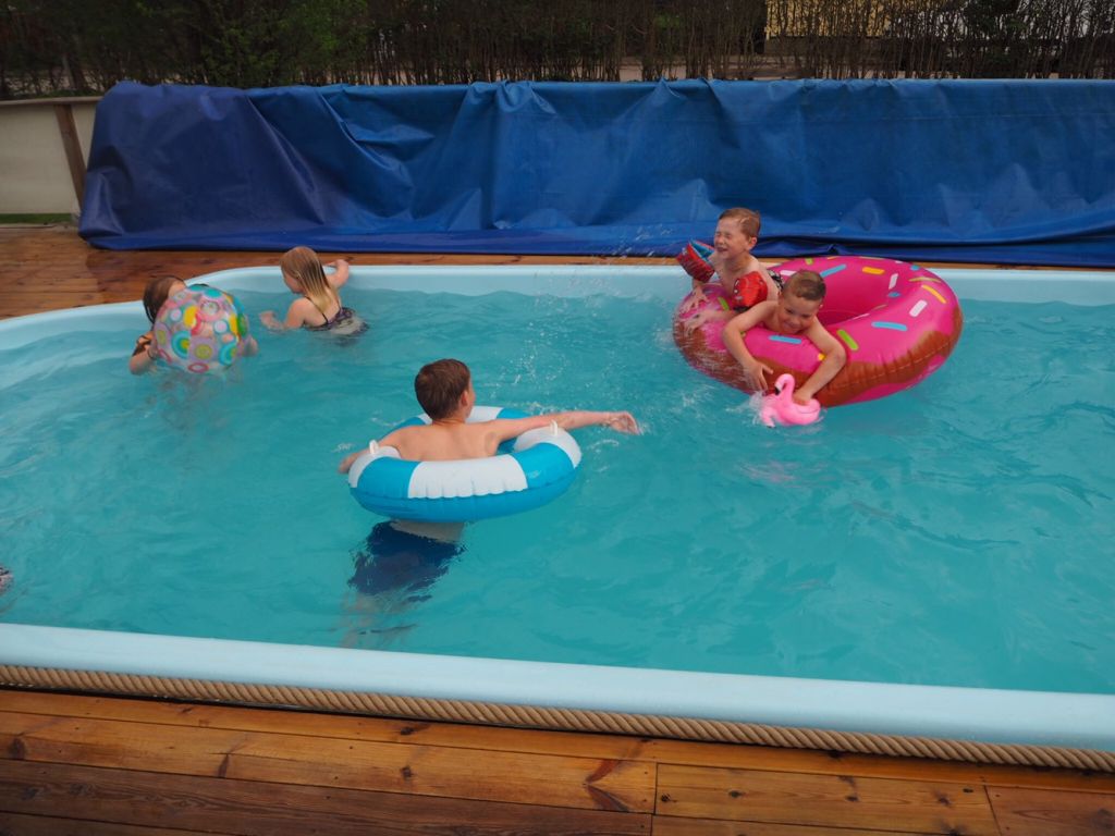 Hörni, igår öppnade Bamseklubben. Haha! Det är Kattis och Beijnes pool som kallas det då hela kvarterets (inklusive mina) ungar vill bada i deras pool. Så härligt! Milo for högt och lågt och badade så läpparna till slut skiftade i lila.