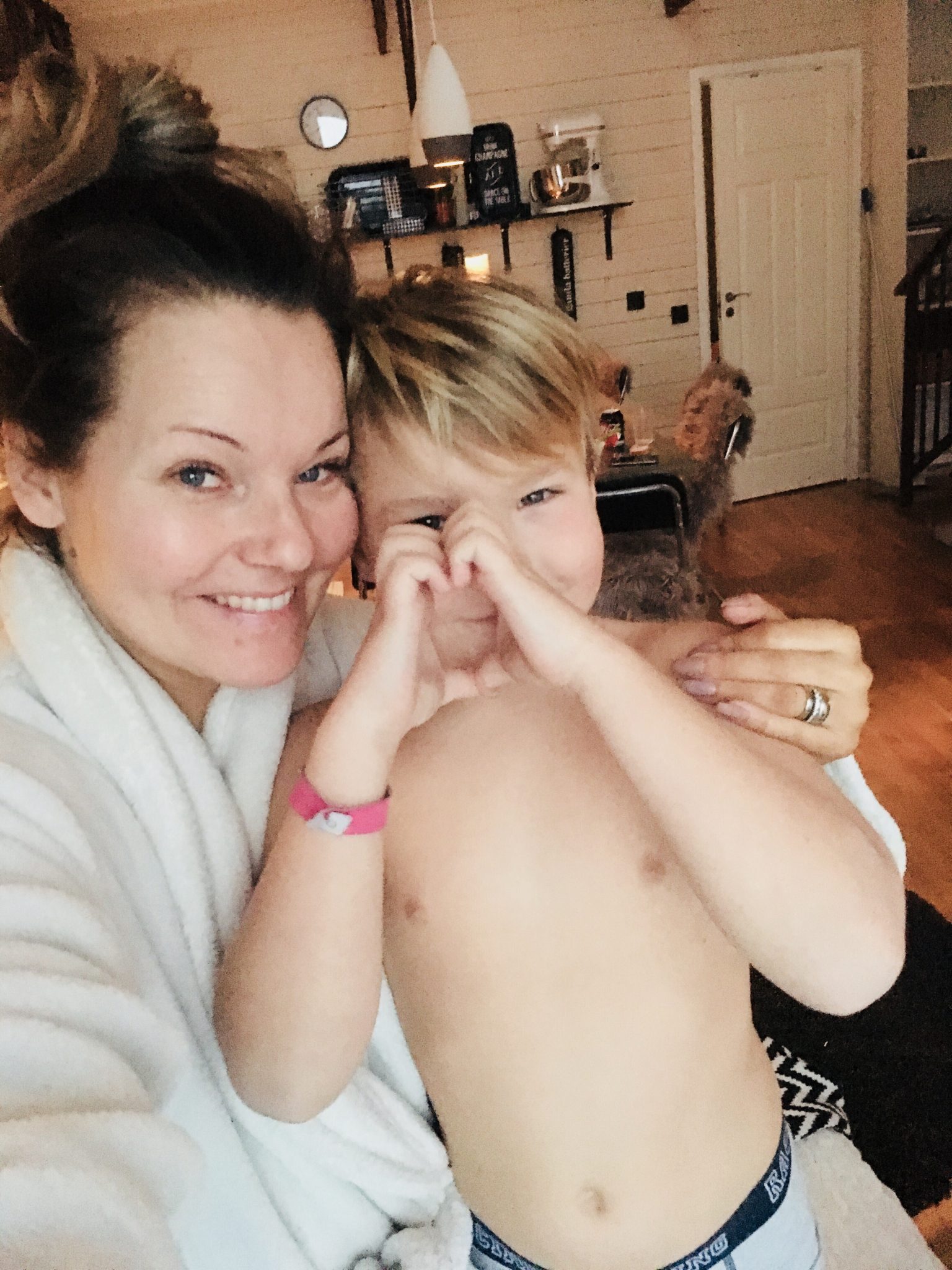 Än så länge bara jag och minifisen vakna. Så söt, han formade hjärtat utan några påhejanden av mamman. Han är sååååå taggad. Idag ska han äntligen få ha sitt kalas. December blev så hysteriskt för att inte tala om Januari. Så då kom vi överens om att vi kör kalas i början av februari. Idag är det äntligen DAGS!