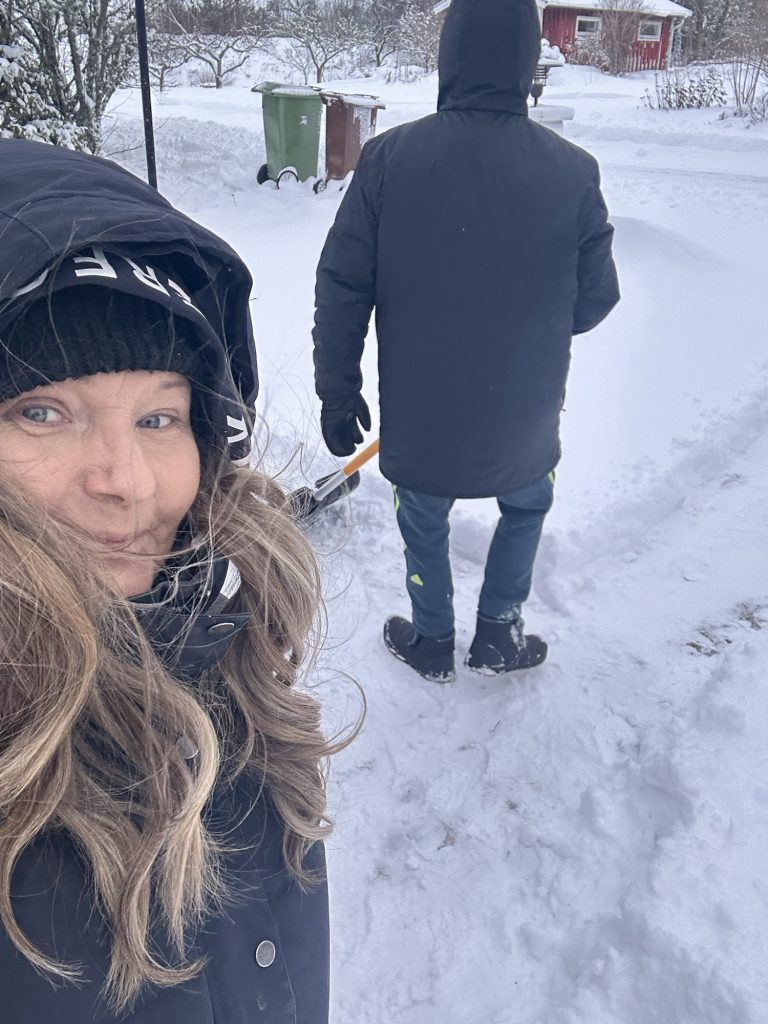 Igår ringde mamma och sa att dom snöat in, mamma med en jobbig ischias och pappas rygg som är paj för tillfället. Så då tog vi oss ut till dom och Tony som är min starka björn skottade upp alla vägar så bilarna kom upp.
