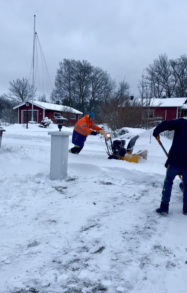 Grannen Stickan kom med snöslungan den sista biten som Tony hade kvar, där var det tjockt så det var tacksamt.